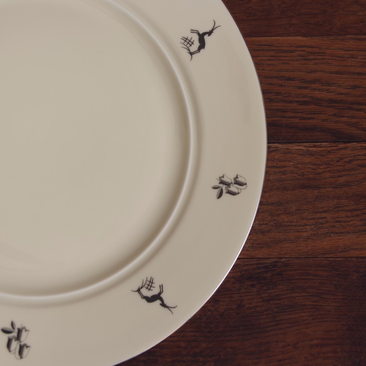 チェコスロバキア製 ヴィンテージ食器 Epiag エピアグ アナベラ 鹿 花 蜂 ディナープレート 大皿 25cm #190122-3 アンティーク 陶器 レトロ Annabella アイボリー