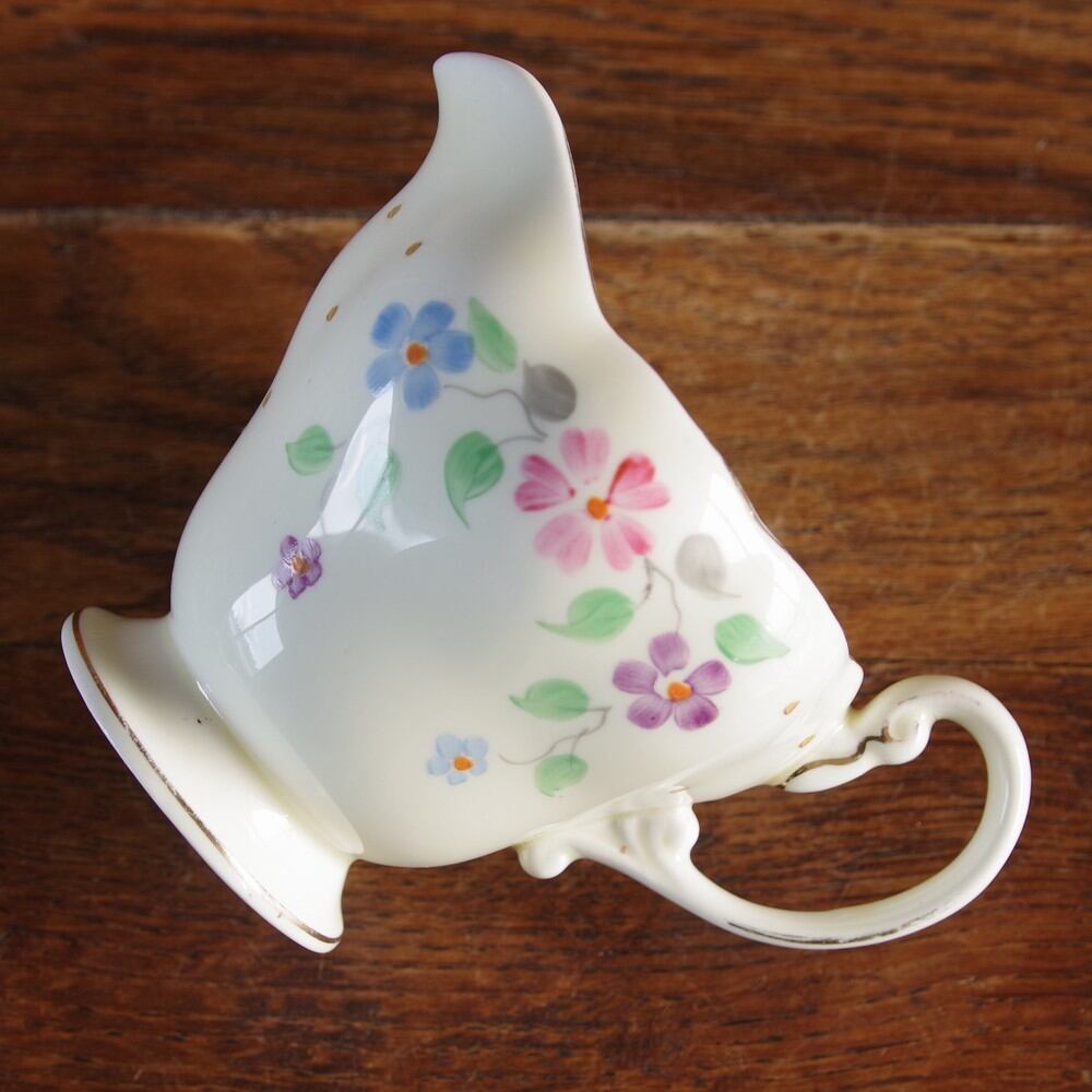 Foley フォーリー イギリス製 アンティーク食器 手描き花柄 クリーマー #190125 ヴィンテージ 陶磁器 レトロ 水玉 ピンク むらさき みずいろ