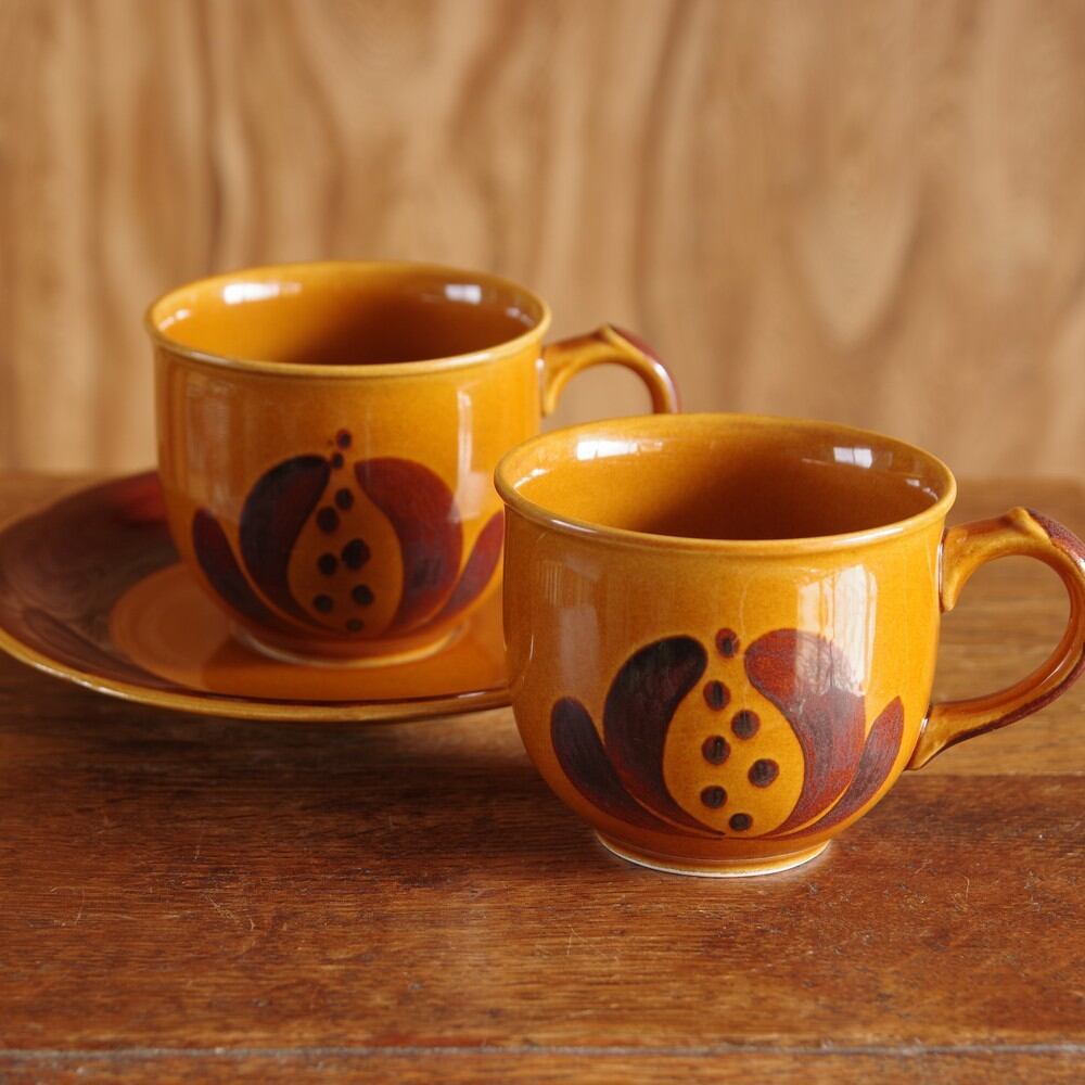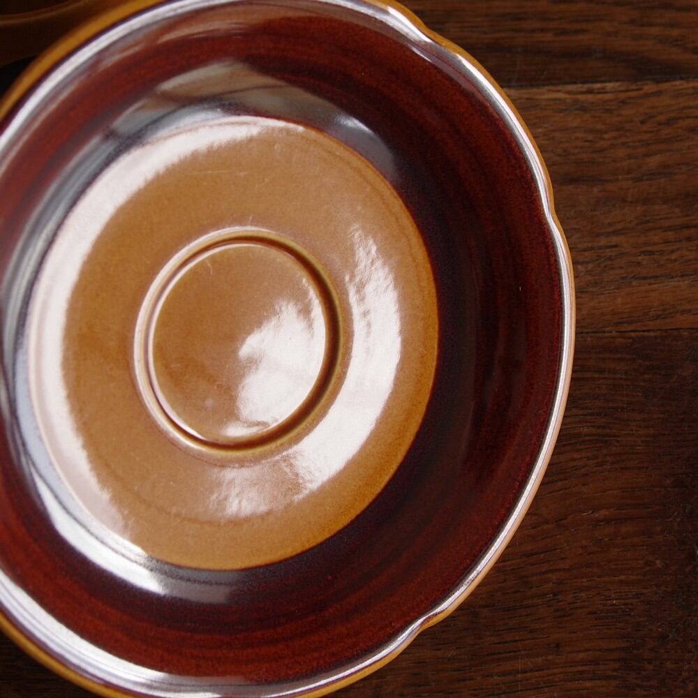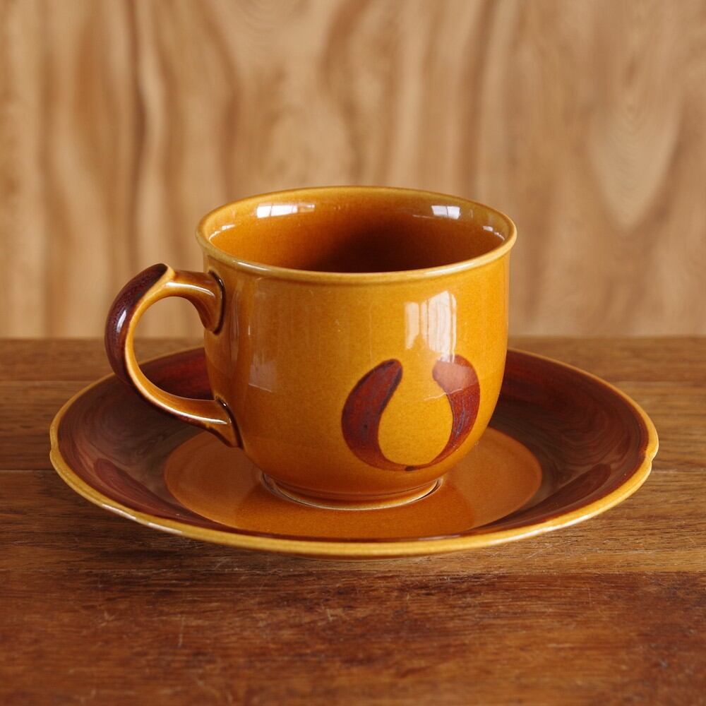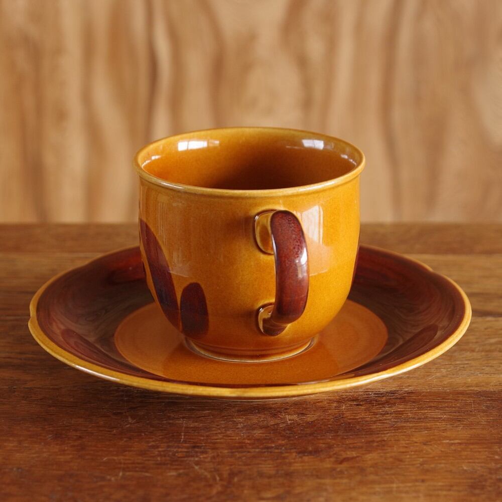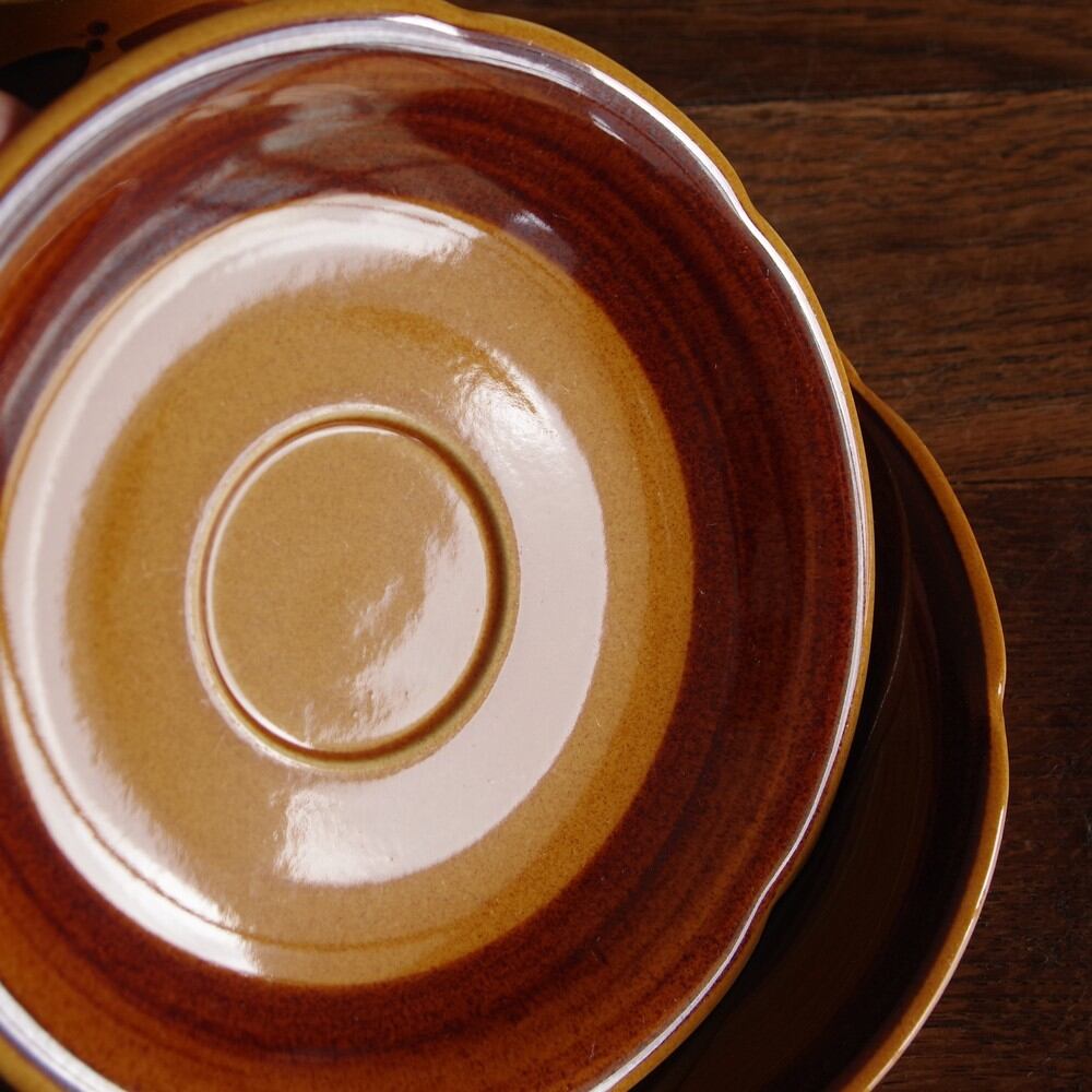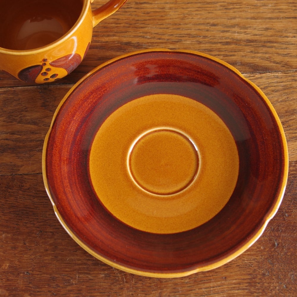 ヴィンテージ食器 Villeroy & Boch ビレロイ&ボッホ ピクニック ブラウン 飴色 カップ ソーサー #190129-1,2 ドイツ製 手描き 花柄 レトロ