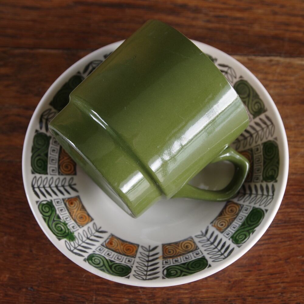イギリス ヴィンテージ Biltons ビルトンズ グリーン コーヒーカップ ソーサー #190129-1 レトロ エスニック 葉っぱ レトロ 食器 陶器