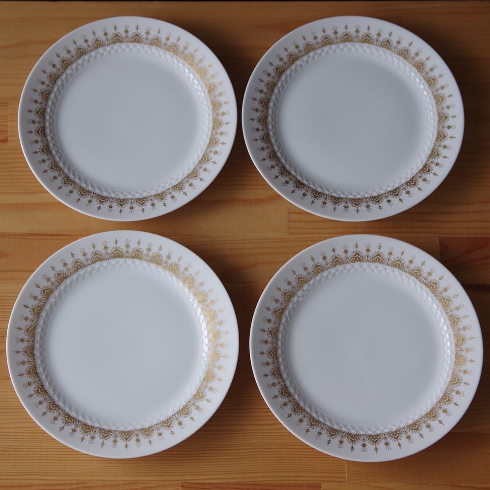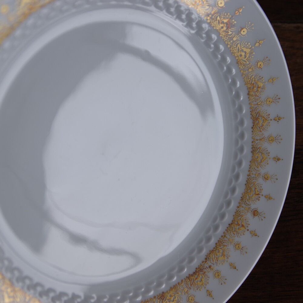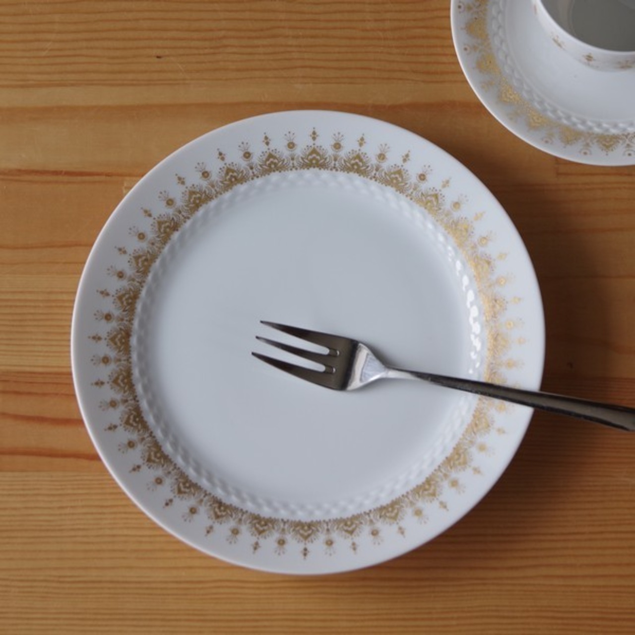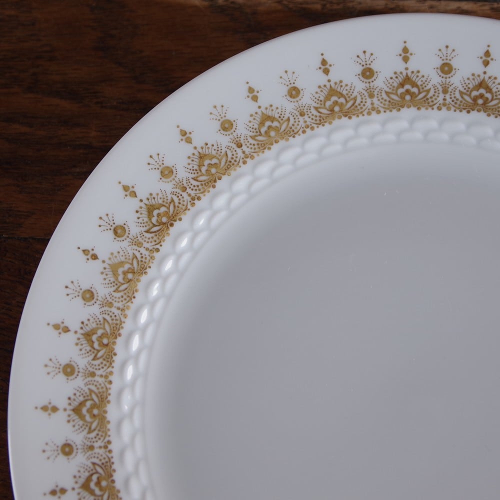 ドイツ製 ヴィンテージ Hutschenreuther フッチェンロイター ゴールド ダマスク柄 ケーキ皿 20cm #190201-1~4 メロディ アンティーク食器 レトロモダン デザートプレート 中皿