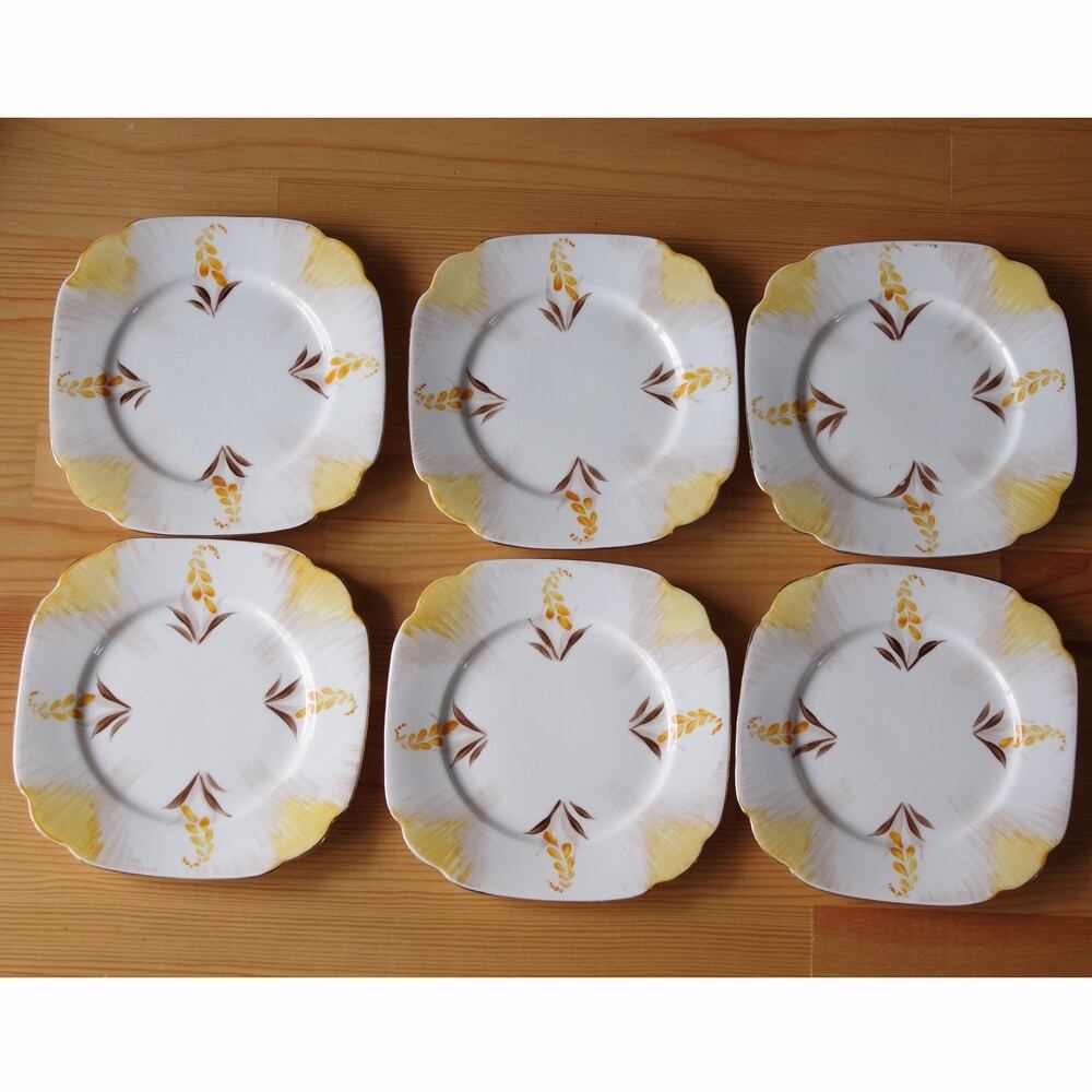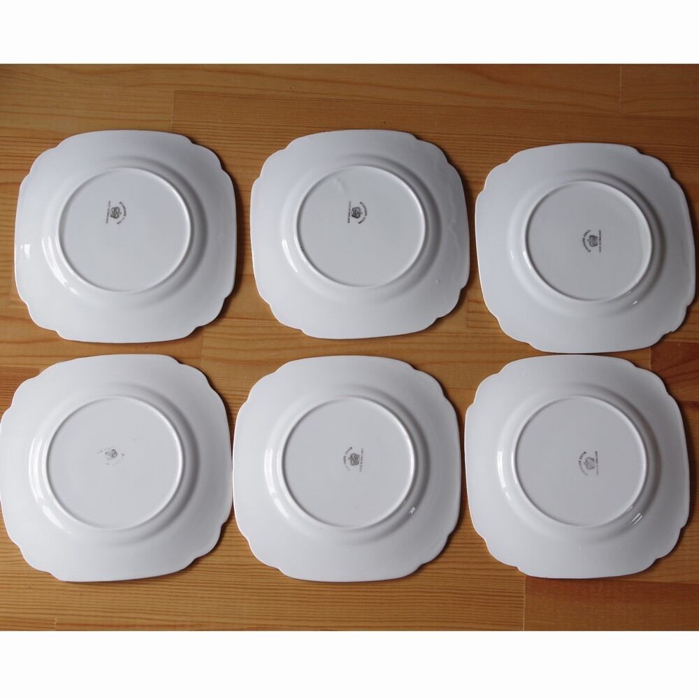 イギリス製 アンティーク食器 Standard China オレンジ色 花柄 スクエアプレート #190214-1~6 ビンテージ 陶磁器 ケーキ皿 中皿 15cm アールヌーボー