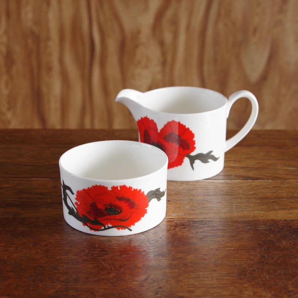 赤いひなげしの絵柄が情熱的に描かれています。