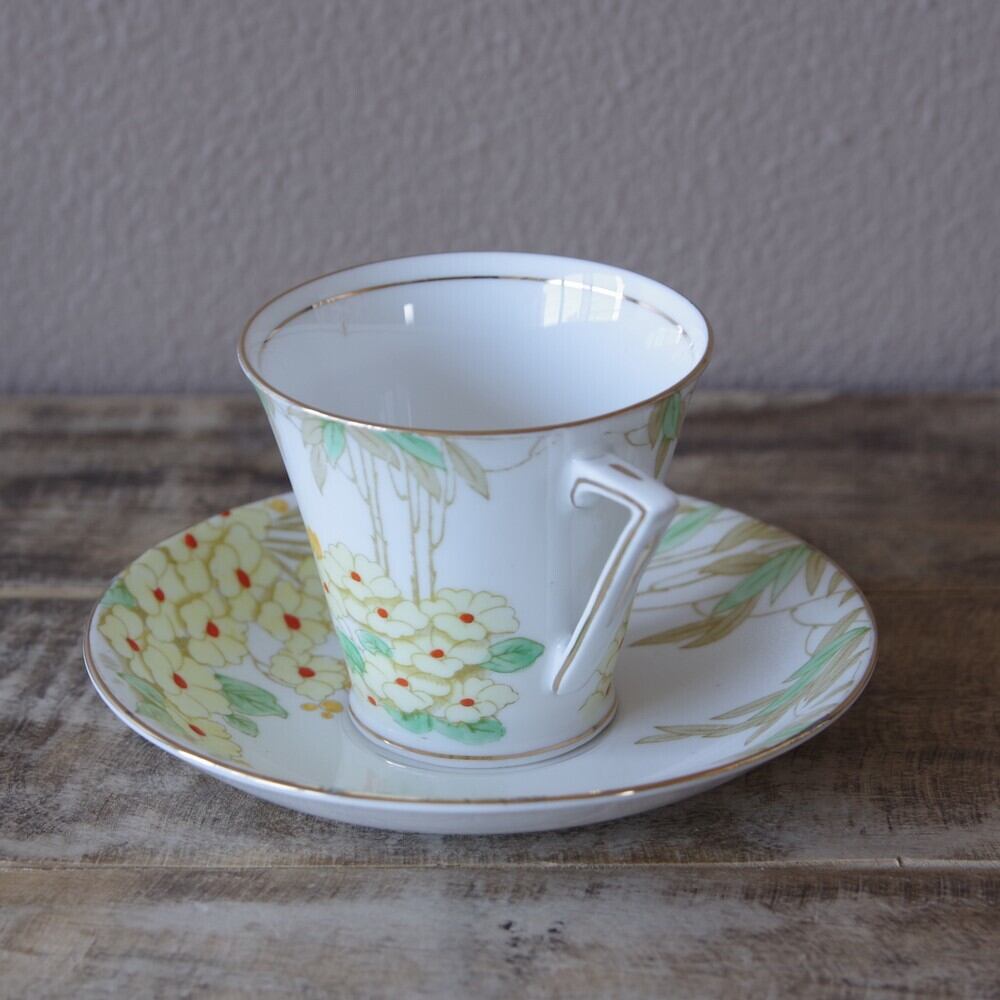 イギリス製 アンティーク食器 Standard アールデコ 黄色 花柄 カップ ソーサー #200425-1 スタンダード Paulette Art Deco レトロモダン