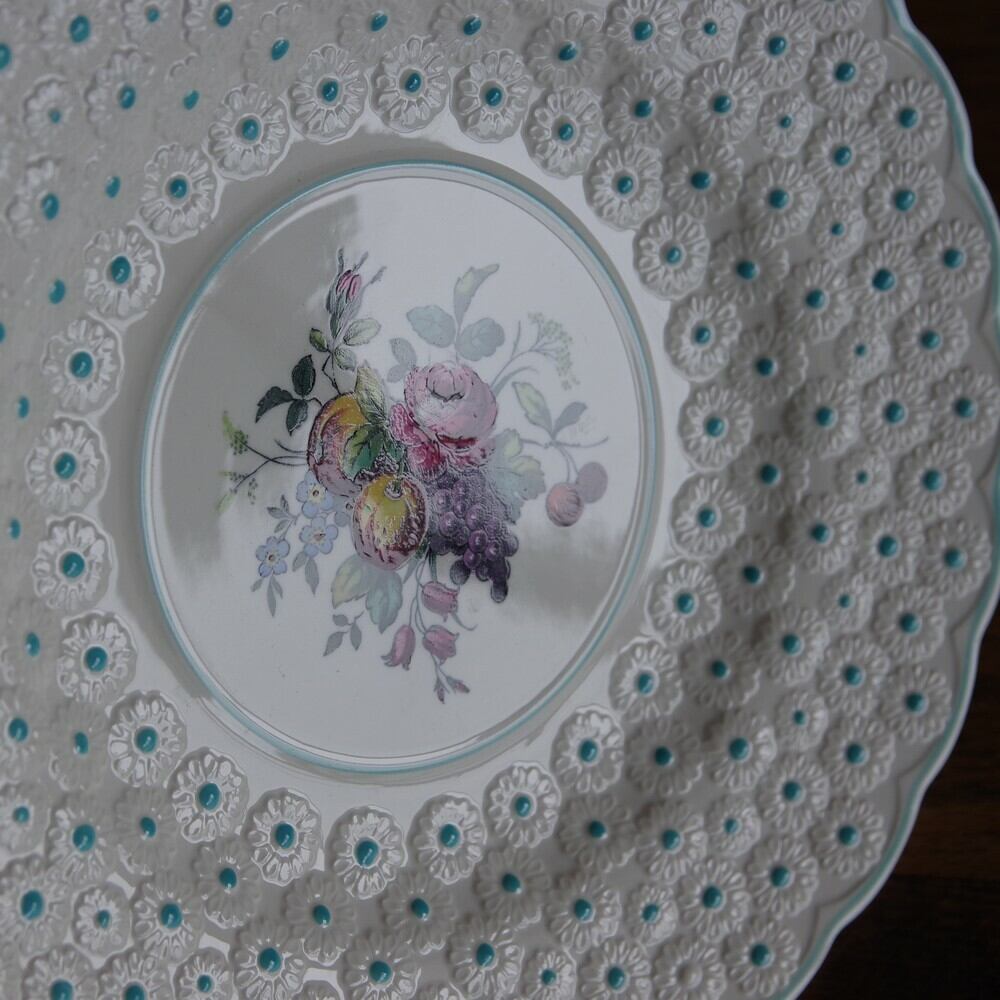 アンティーク 食器 SPODE スポード フルーツ 花柄 レリーフ プレート 中皿 ブルー #190228-1 ターコイズ エンボス コープランド Copeland
