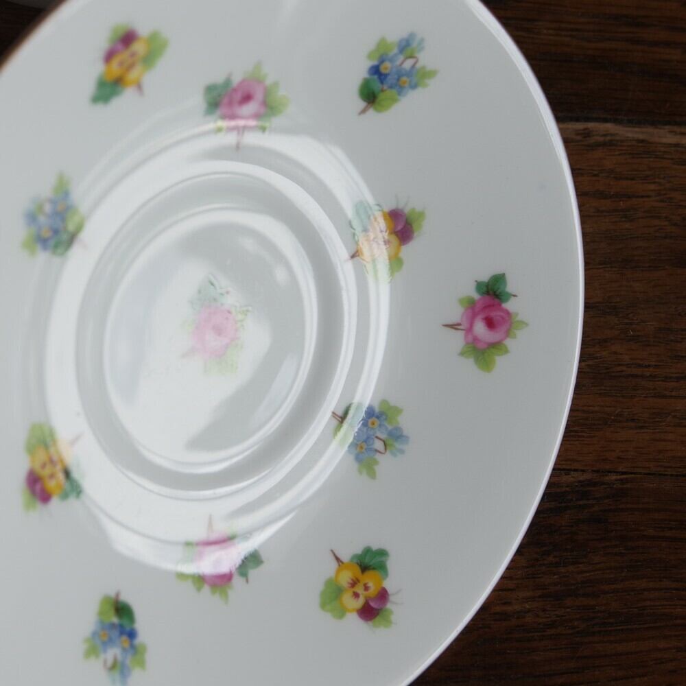 全体に、小さな薔薇やパンジー、勿忘草の花の絵柄が散らされており、