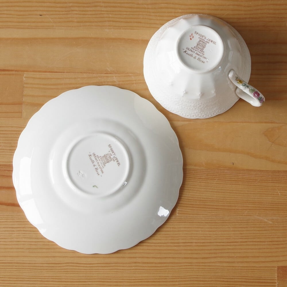 SPODE スポード コープランド Copeland 花柄 ティーカップ ソーサー Jewel #190304-1 エンボス イギリス製 アンティーク 食器 Heath & Roses