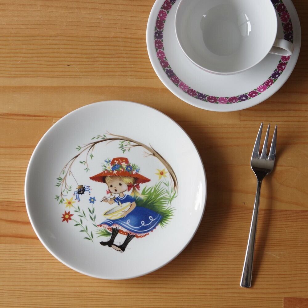 イギリス製 レトロ雑貨 Ridgway リッジウェイ ケーキプレート お皿 17cm 女の子 クモ #190306-4 ヴィンテージ 食器 かわいい キッチュ アンティーク 陶器