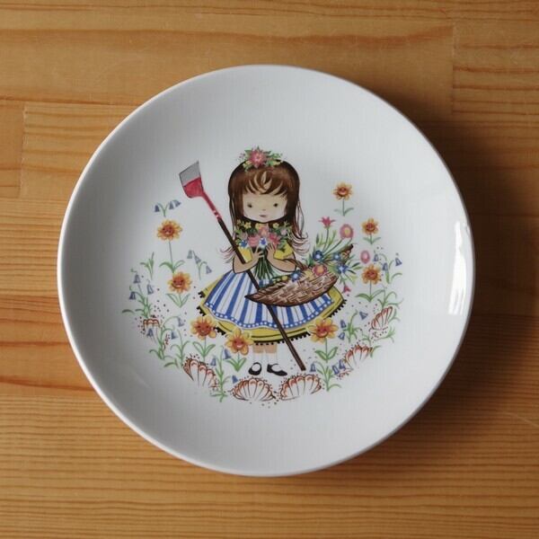 イギリス ヴィンテージ食器 リッジウェイ デザートプレート 中皿 17cm 女の子 花 #190306-5 Ridgway Staffordshire キッチュ アンティーク 陶磁器
