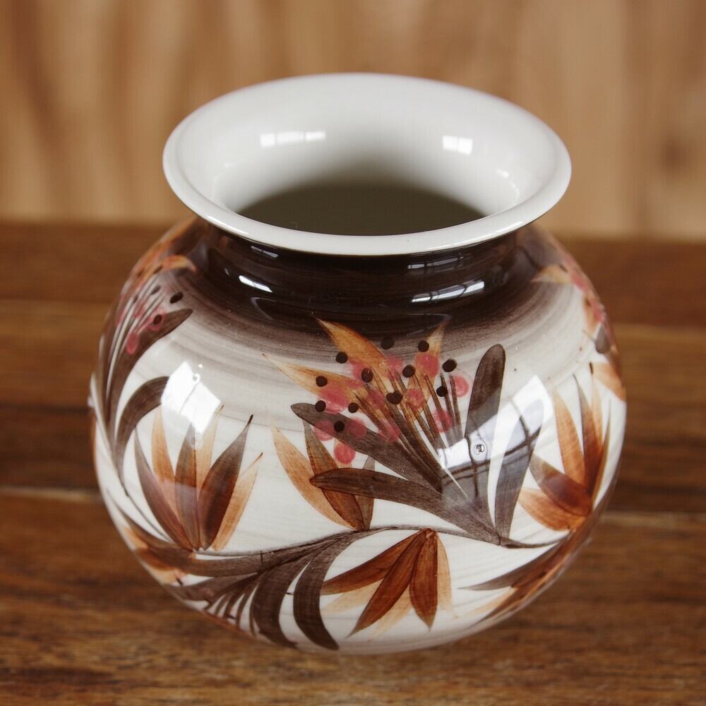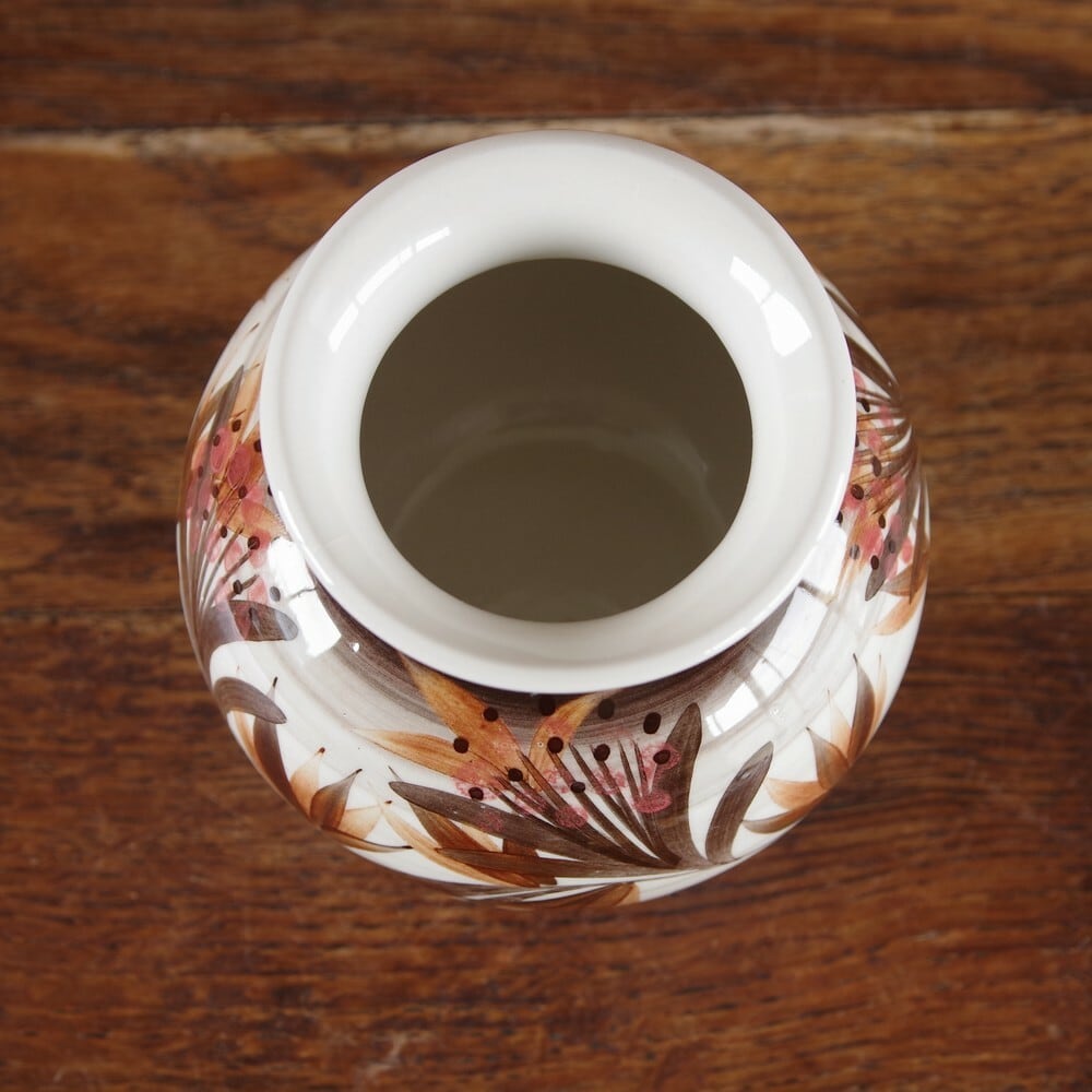 Jersey Pottery ジャージーポタリー 花瓶 フラワーベース ブラウン 花柄 #190306-2 イギリス製 ビンテージ レトロ 手描き ボタニカル