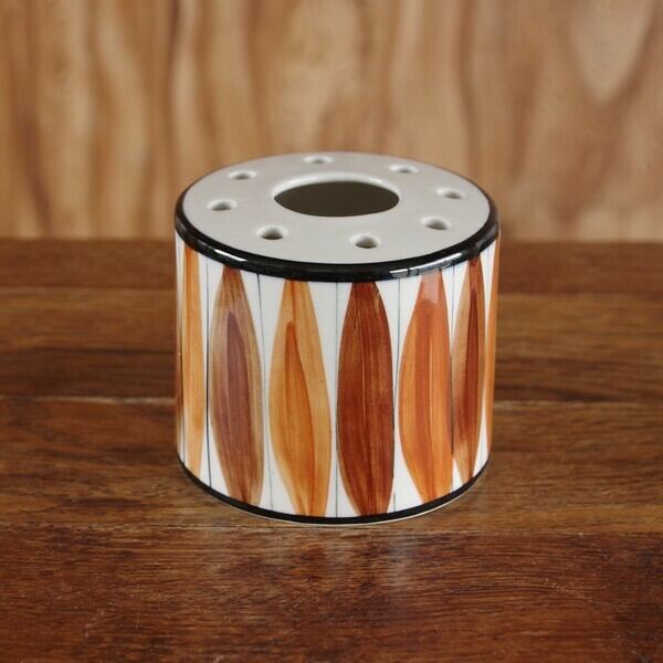 イギリス製 ビンテージ 雑貨 陶器 ジャージーポタリー 花瓶 フラワーベース レトロモダン #190306-6 Jersey Pottery アンティーク リーフ柄 楕円 手描き