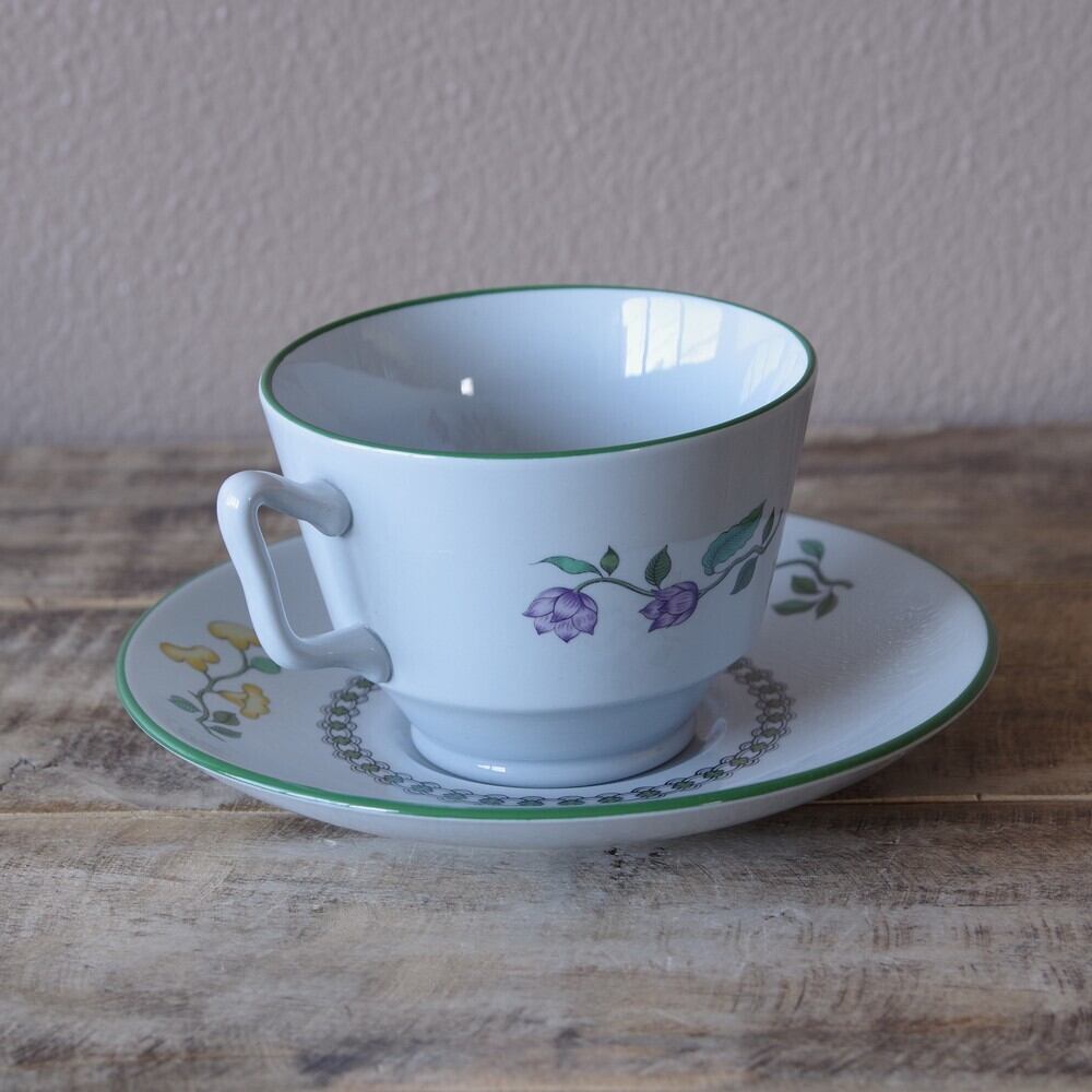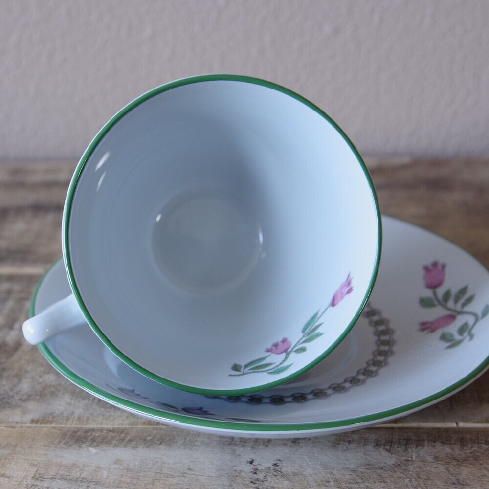 カップの内側にも花の絵柄が入っており、グリーンのふちどりがあります。