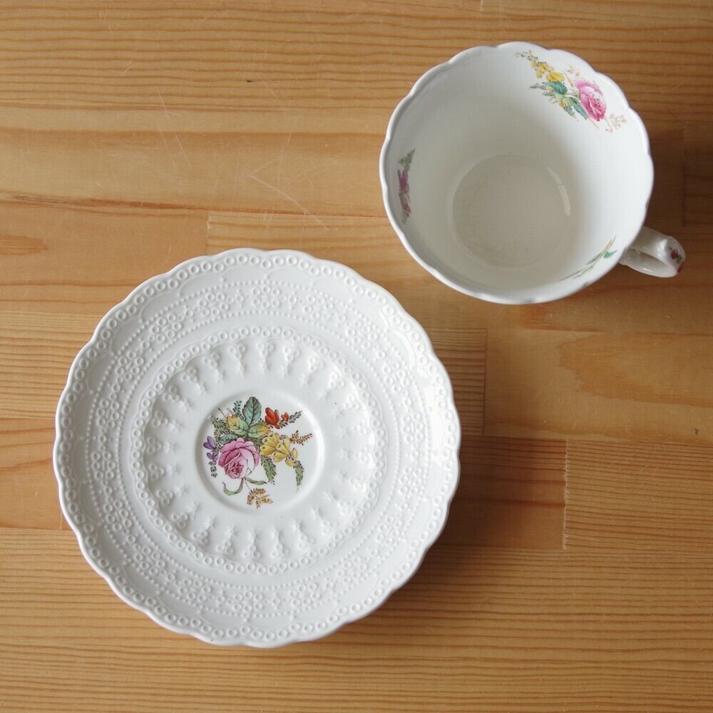 SPODE スポード コープランド Copeland 花柄 ティーカップ ソーサー Jewel #190312 エンボス イギリス製 アンティーク 食器 Heath & Roses