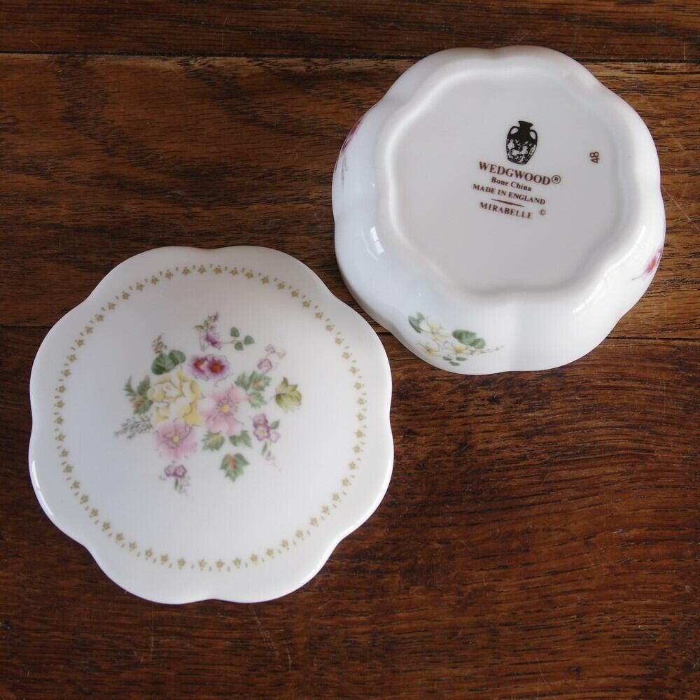 アンティーク雑貨 ウェッジウッド ミラべル トリンケットボックス 小物入れ 花型 #190325-2 ビンテージ Wedgwood Mirabelle 花柄 チューリップ 蓋物