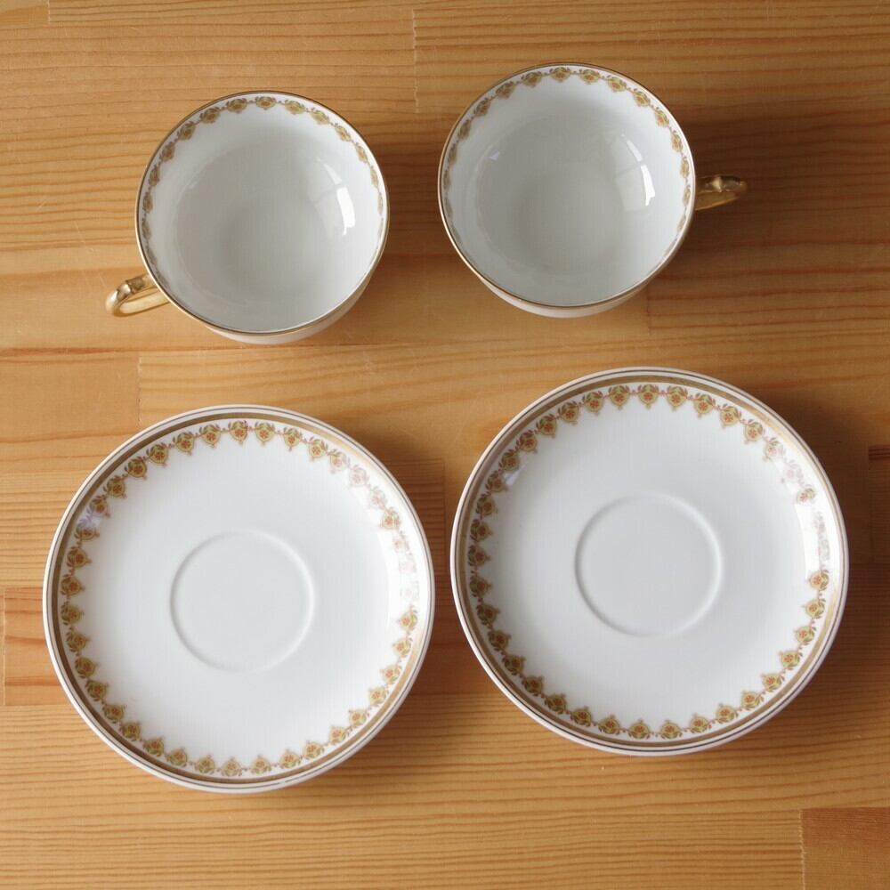 フランス製 アンティーク リモージュ ゴールド グリーン カップ ソーサー #190320-5,6 Limoges Haviland アビランド ヴィンテージ 食器