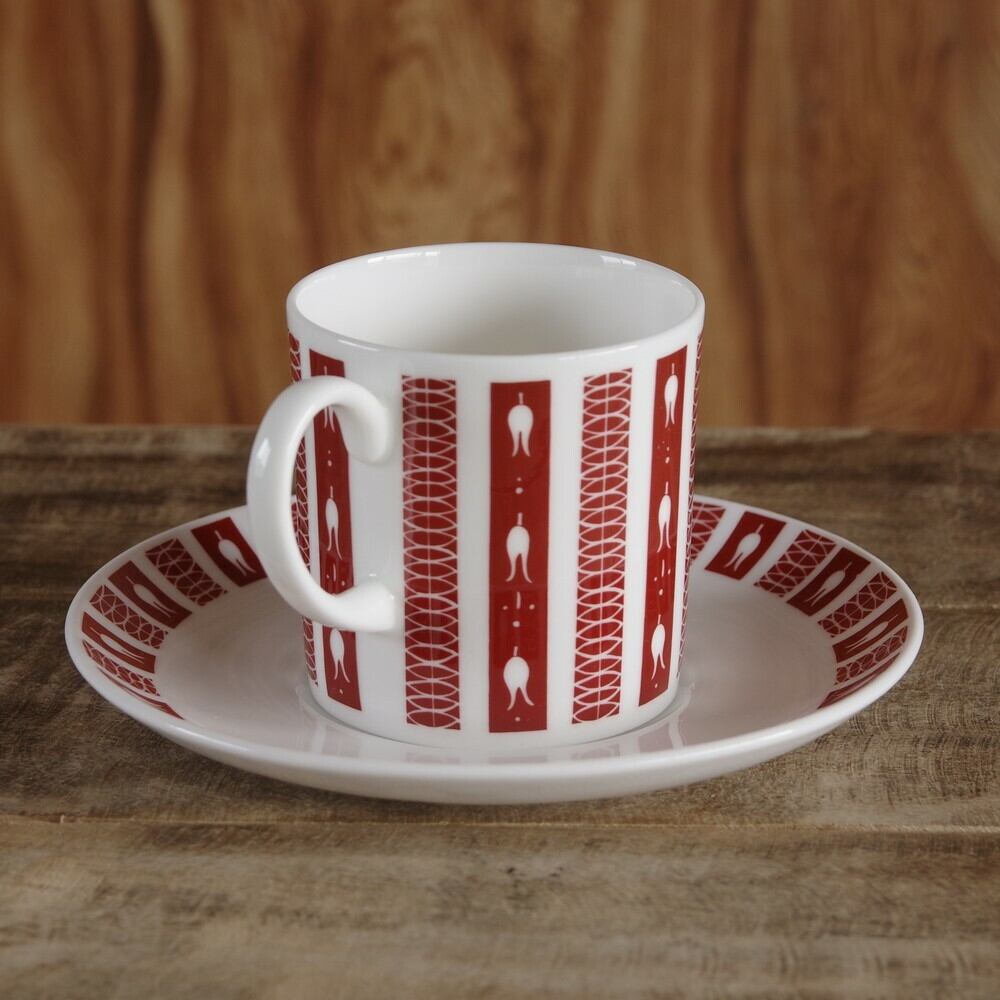スージークーパー アンドロメダ コーヒーカップ ソーサー #190419-1,2 Susie Cooper Andromeda 花柄 ストライプ えんじ