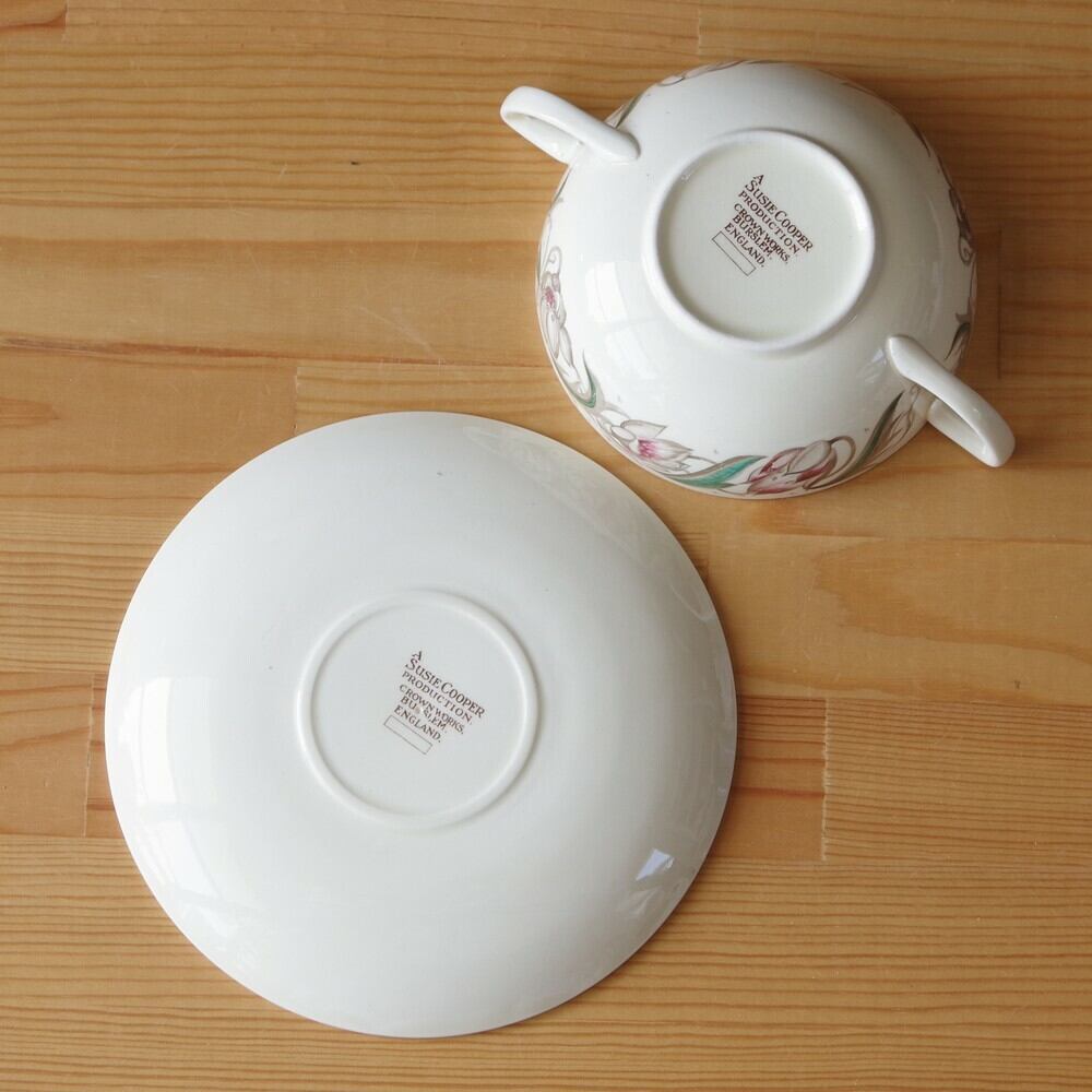 ヴィンテージ食器 スージークーパー エンドン ENDON スープボウル ソーサー #190422-1 Susie Cooper アンティーク イギリス製 陶器 花柄