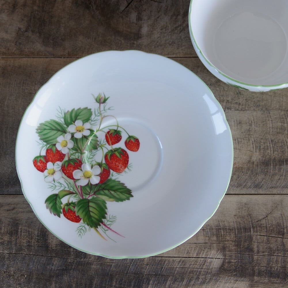 イギリス製 アンティーク SHELLEY シェリー いちご柄 ティーカップ ソーサー #190502-1,2 ヴィンテージ 食器 レトロ フルーツ ストロベリー