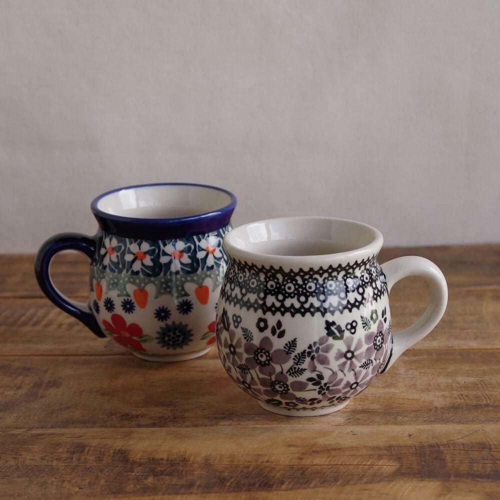 【再入荷】【新品】 ポーランド食器 ポーリッシュポタリー マグカップ 200ml グレー 花柄 おしゃれ K67-DPSC ボレスワヴィエツ陶器 Boleslawiec コーヒーカップ レトロ