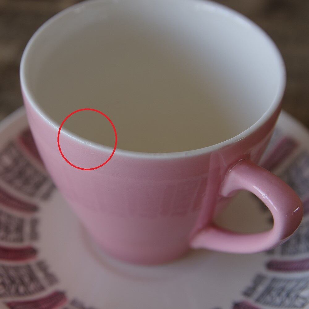 シンプルな無地のカップで、外側のみに淡いピンクの色付けがあります。