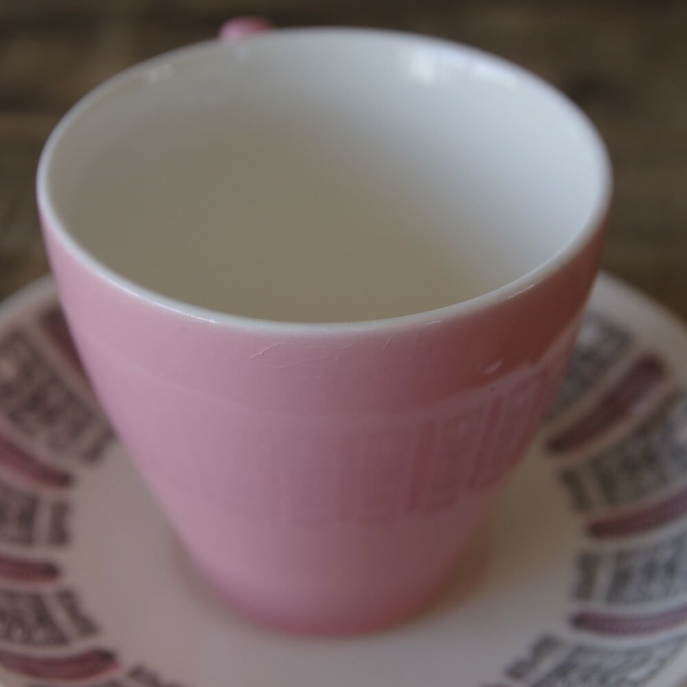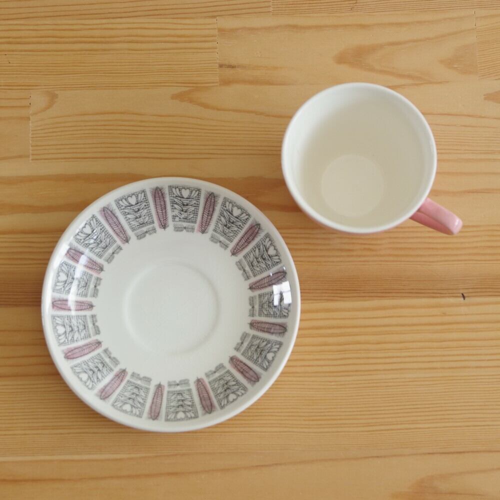 イギリス Biltons ビルトンズ ピンク 羽根 ボタニカル柄 コーヒーカップ ソーサー #190613-2 アンティーク ヴィンテージ 食器 レトロかわいい