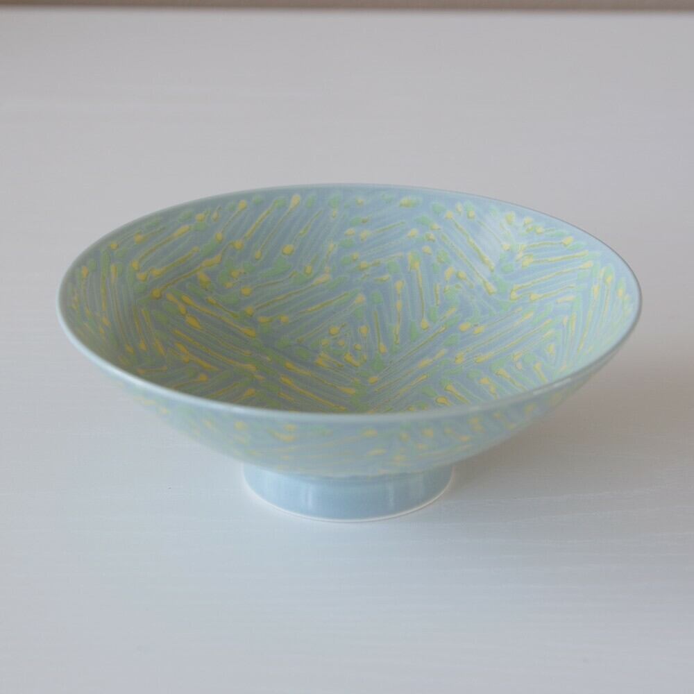 【再入荷】【新品】 白山陶器(波佐見焼) 平茶碗 飯碗 CB-4 グリーン 黄色 ペイント ポップ おしゃれ 浅めで食べやすいお茶わん