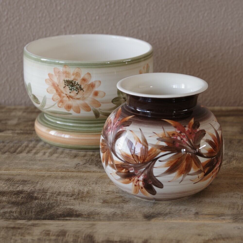 Jersey Pottery ジャージーポタリー 花瓶 フラワーベース ブラウン 花柄 #190620 イギリス製 ビンテージ レトロ 手描き ボタニカル 雑貨