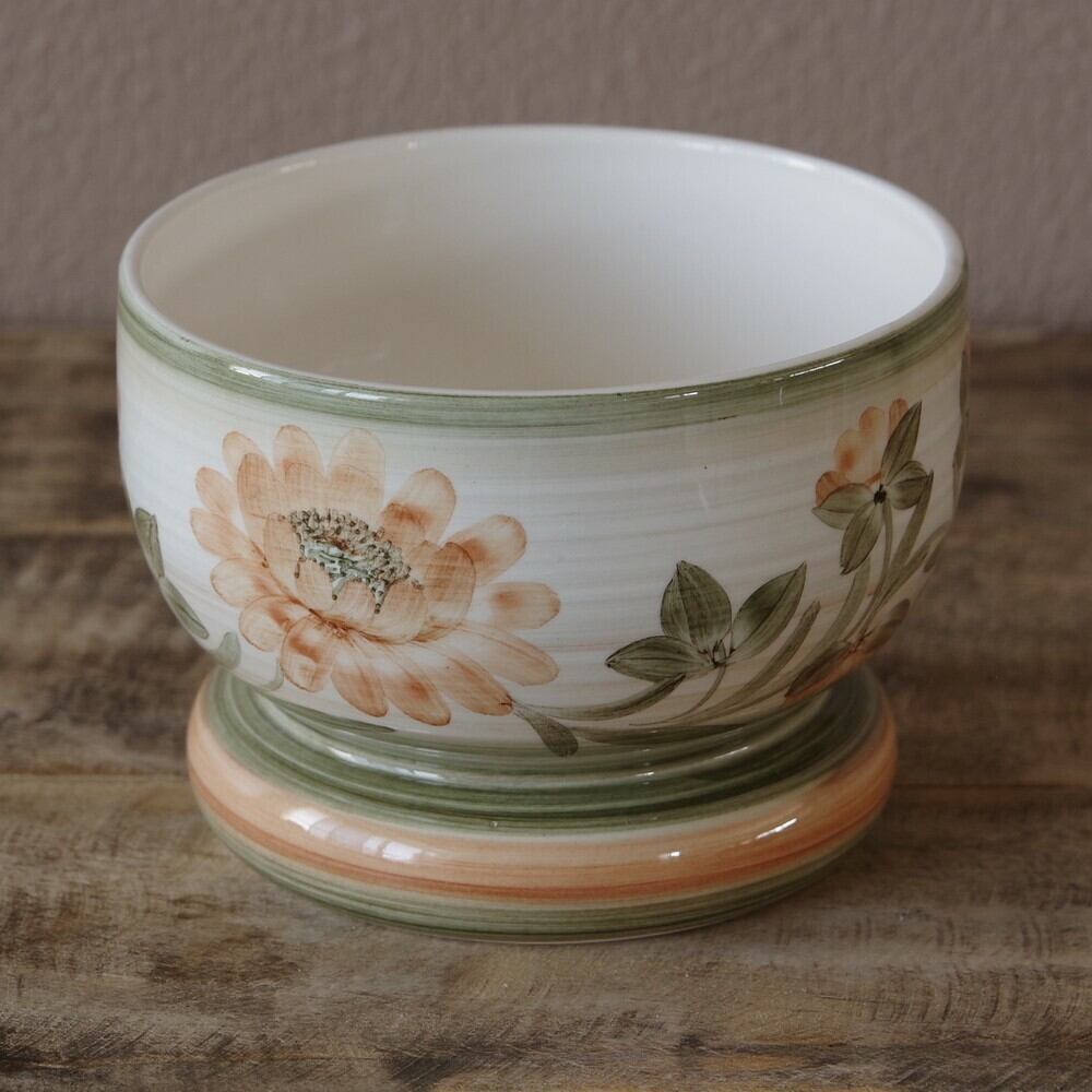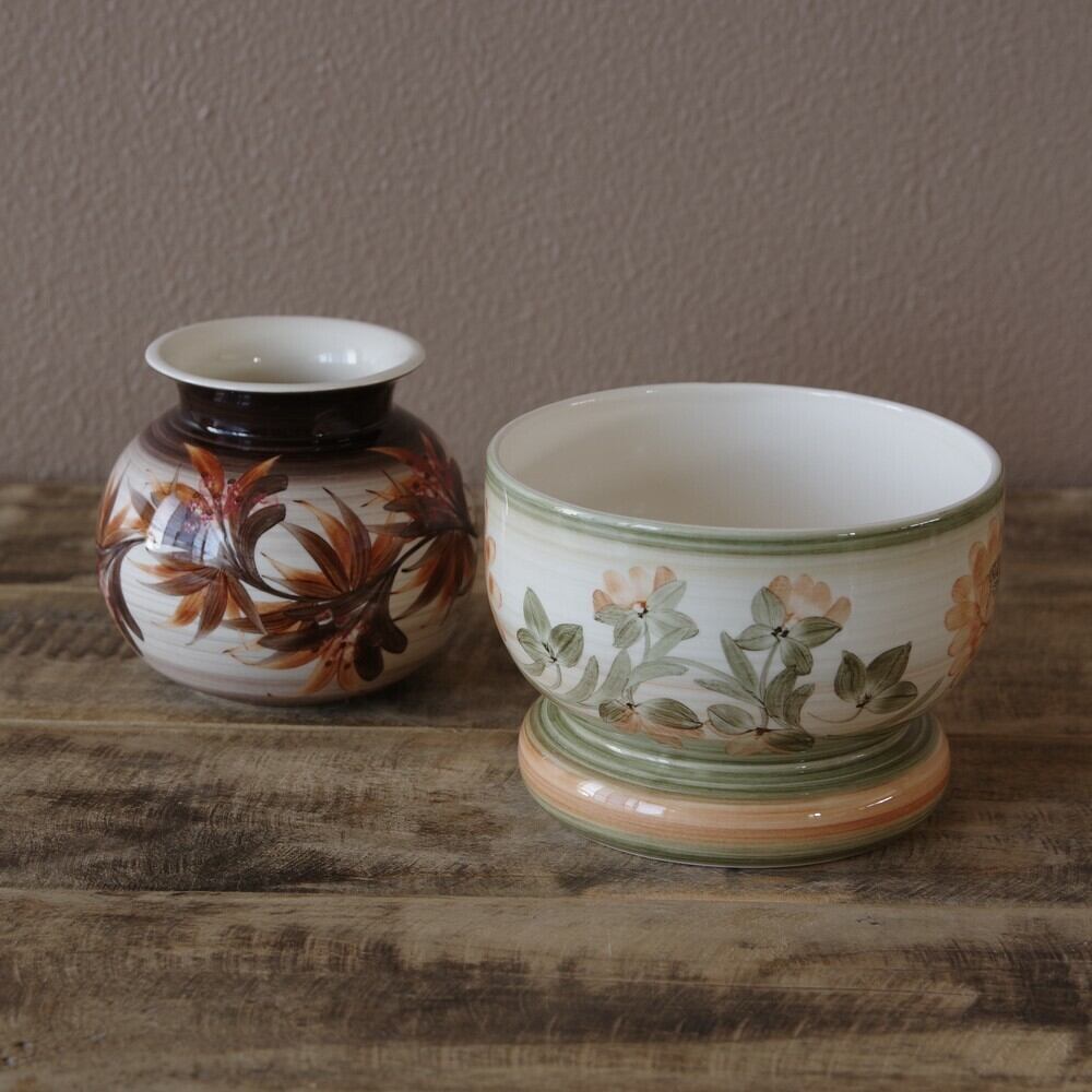 イギリス製 ヴィンテージ雑貨 ジャージーポタリー Jersey Pottery ポット ボウル ピンク花柄 #190620 手描き ハンドペイント レトロ 陶器 花瓶