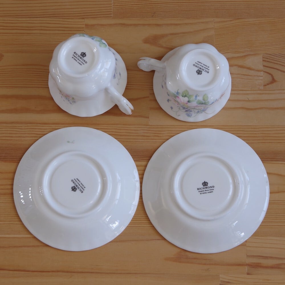 イギリス ロイヤル・アルバート リッチモンド ピンク 花柄 コーヒーカップ ソーサー #190625-1,2 ヴィンテージ Royal Albert Richmond BONE CHINA