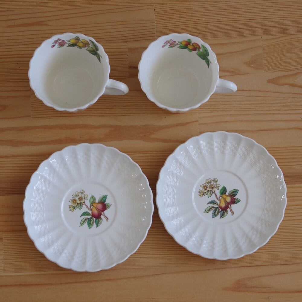 ヴィンテージ食器 SPODE スポード Glendale グレンデール コーヒーカップ ソーサー #190625-1,2 イギリス ウィッカー レリーフ エンボス フルーツ柄