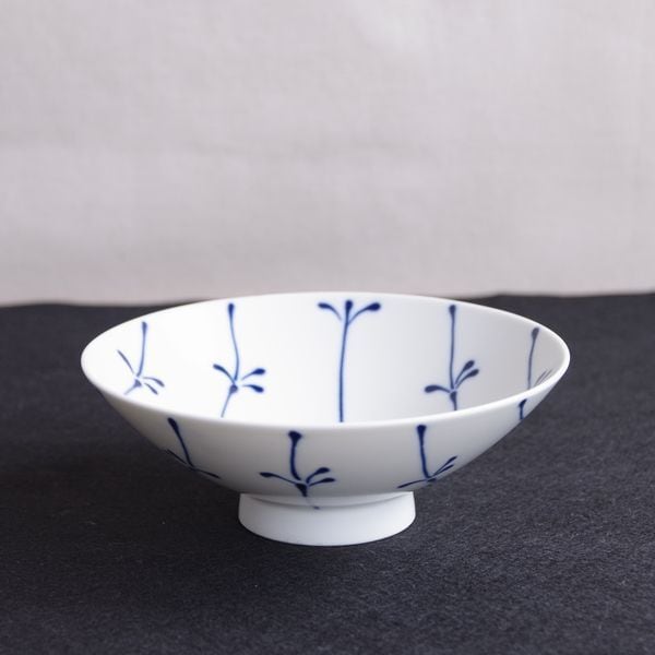 【再入荷】【新品】 白山陶器(波佐見焼) 平茶碗 飯碗 ST-17 白 ネイビー 木の芽 ポップ おしゃれ ご飯茶碗 ボウル