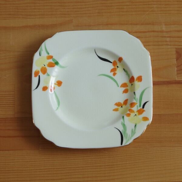 アンティーク 陶磁器 New England オレンジ花柄 デザートプレート ケーキ皿 #190701 イギリス製 レトロ ニューイングランド スクエア