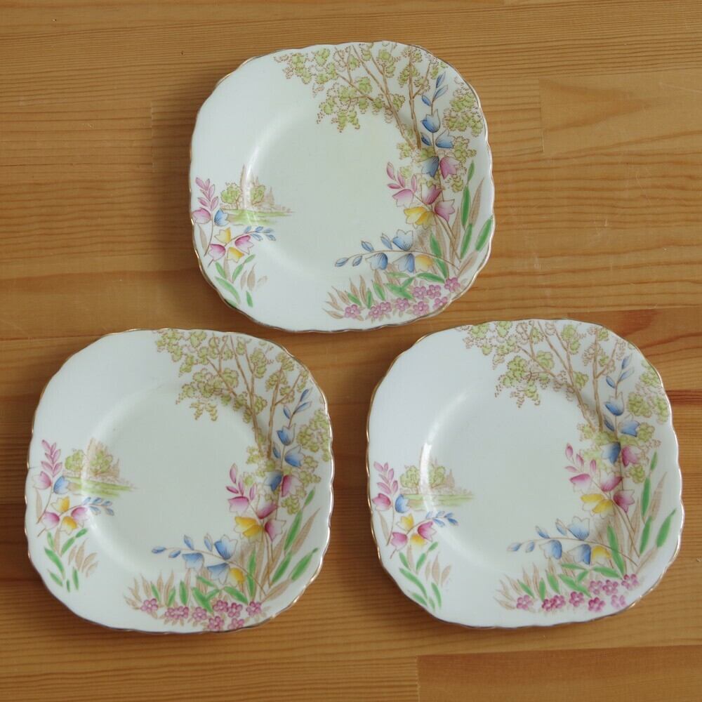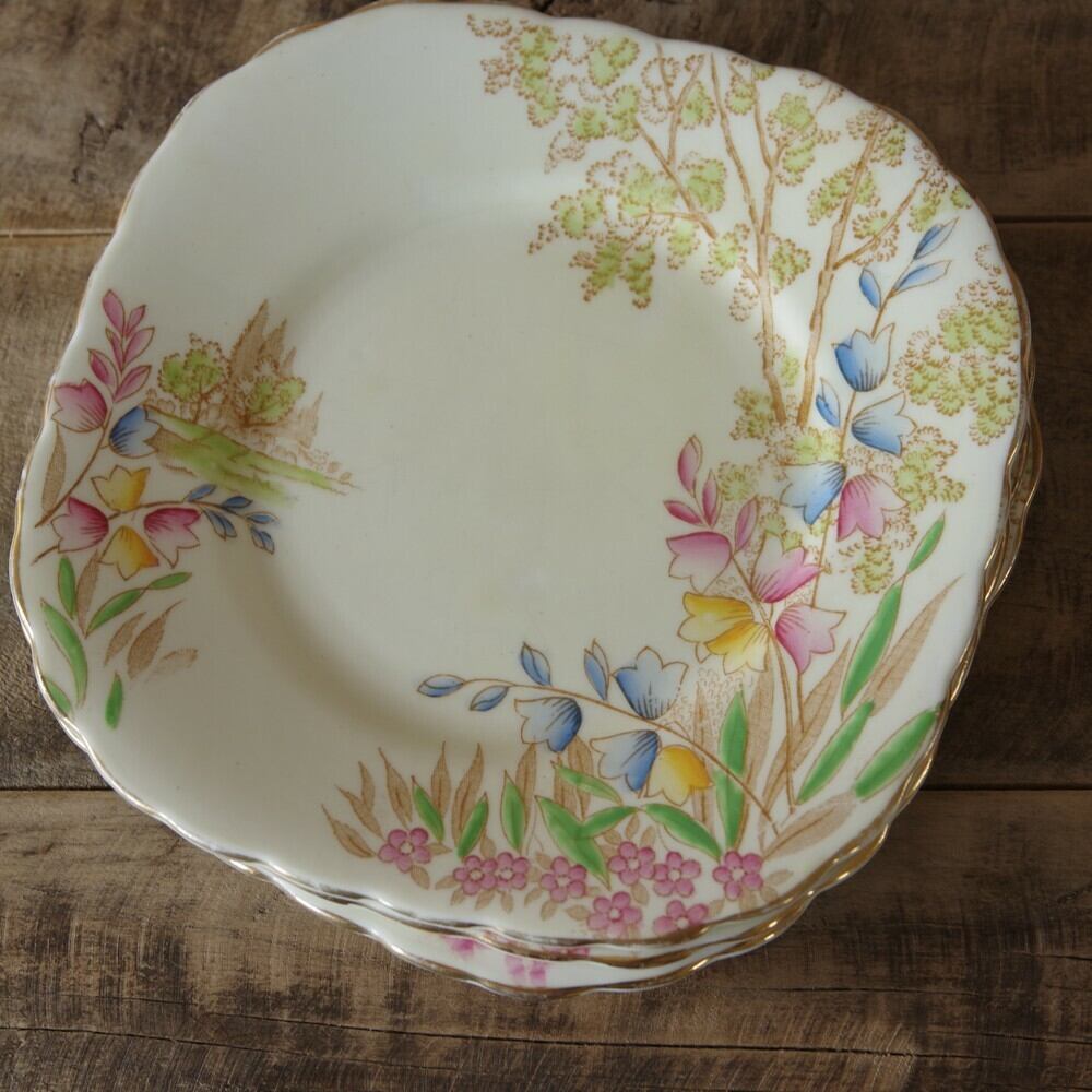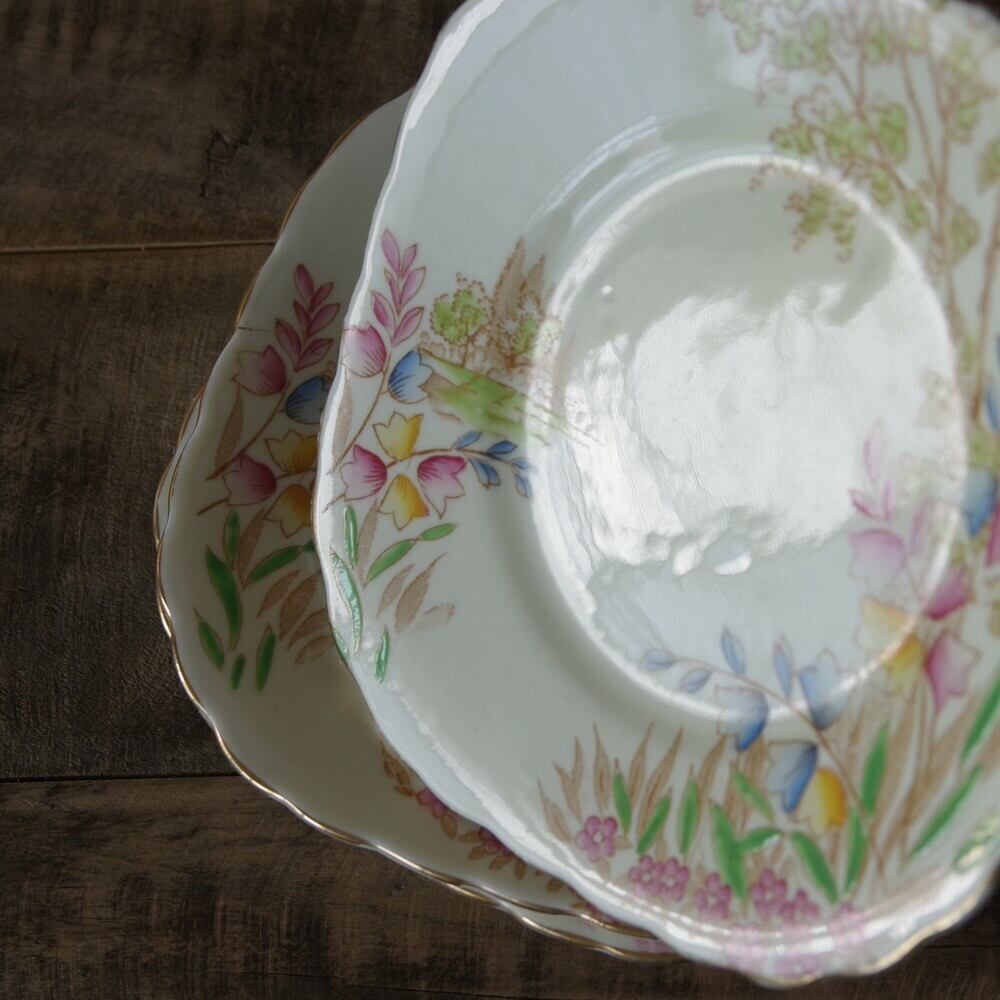 アンティーク 食器 Wellington レトロ 花柄 デザートプレート ケーキ皿 #190701-1~3 イギリス製 レトロ ウェリントン 陶磁器