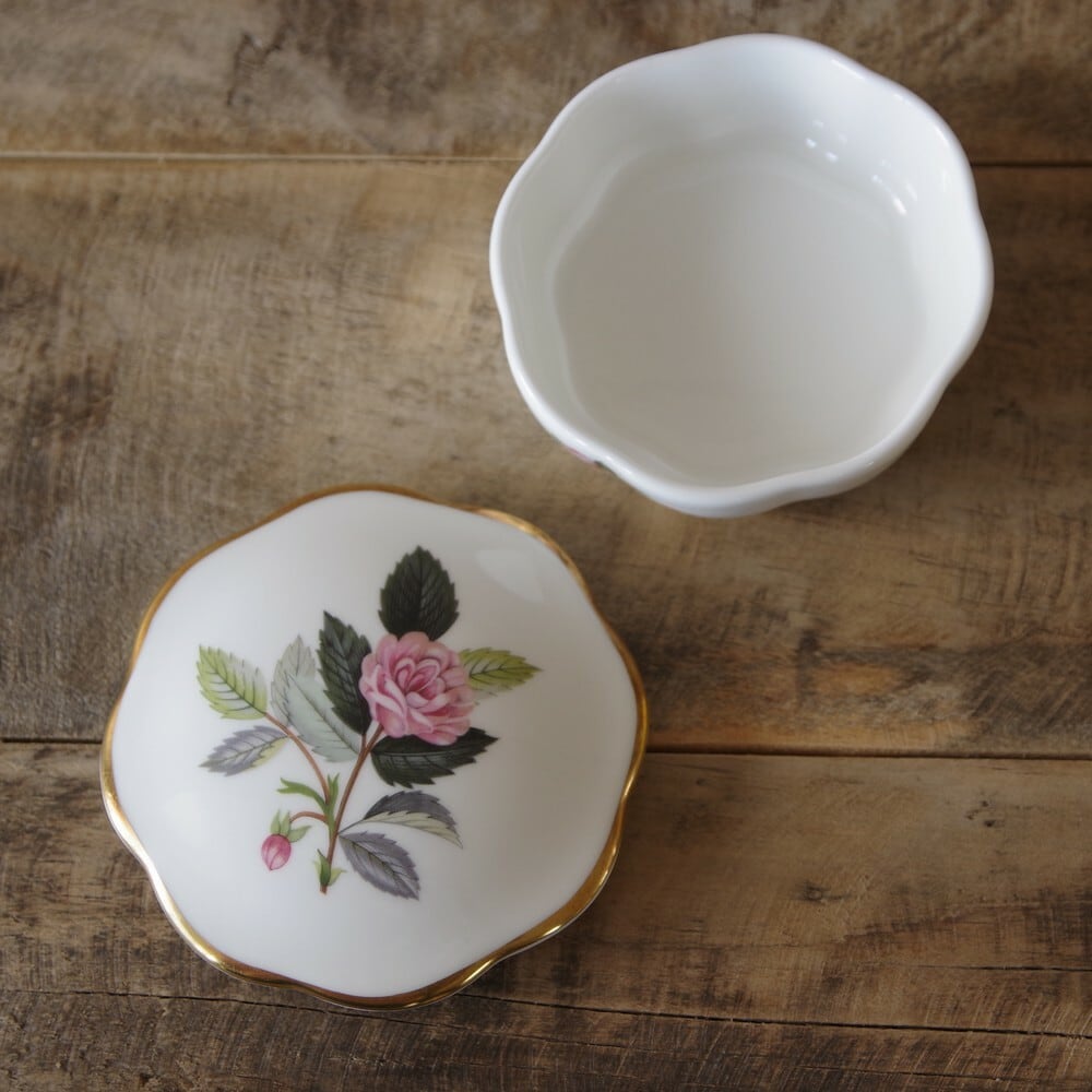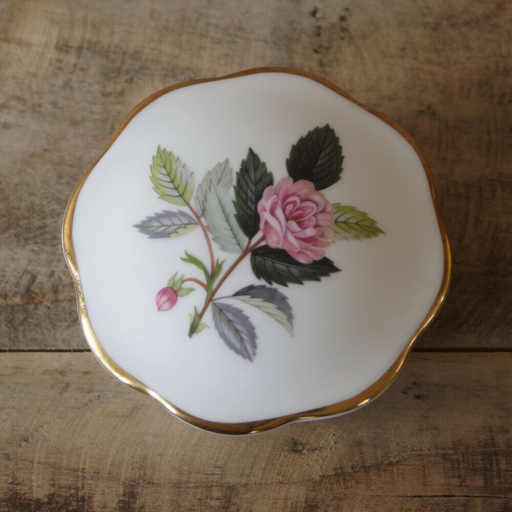 ウェッジウッド ハザウェイローズ 薔薇 花柄 トリンケットボックス 小物入れ リングケース 花型 #190710 Wedgwood Hathaway Rose ピンク 蓋物