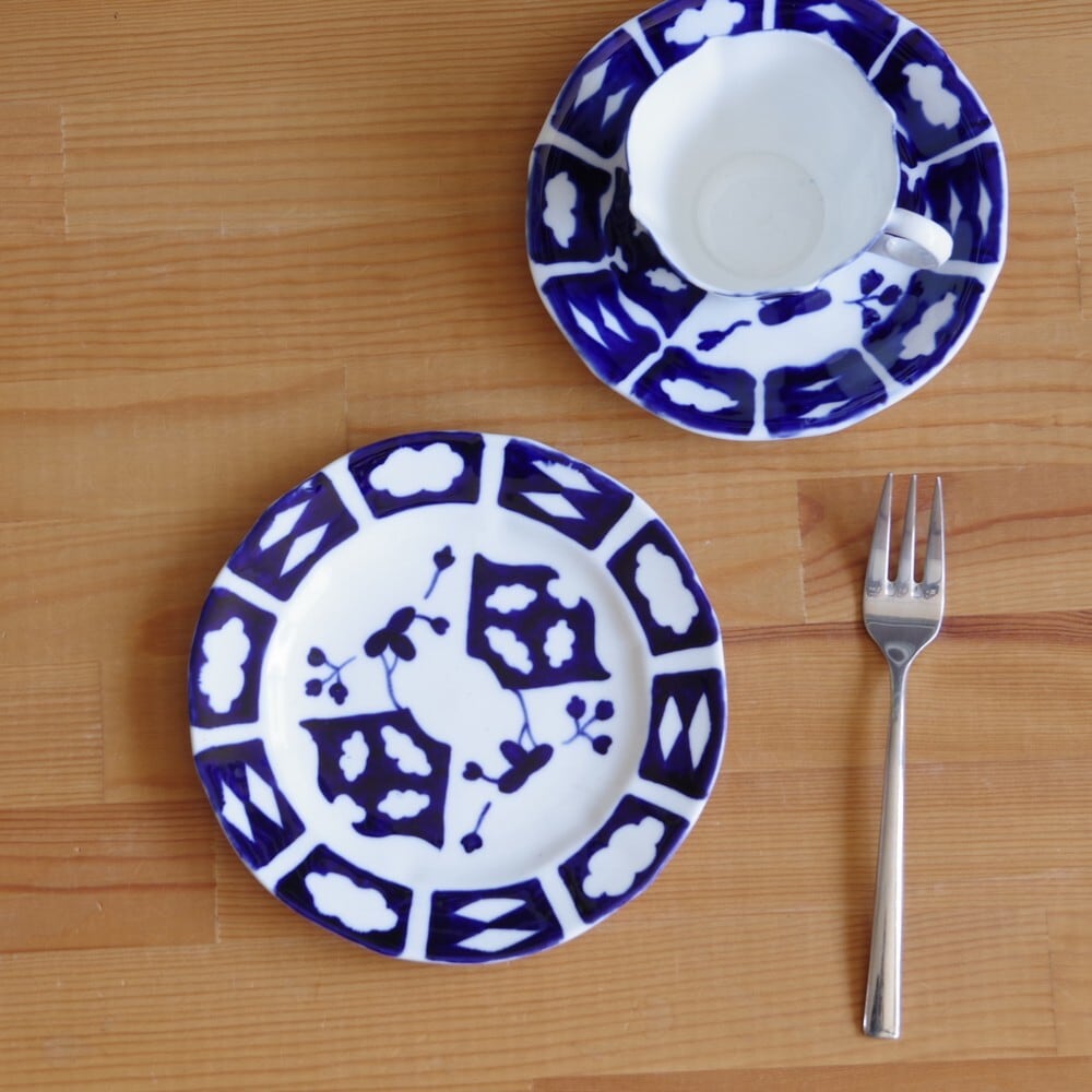 ヴィンテージ ロイヤルクラウンダービー 未完 伊万里 ネイビー 染付 ケーキ皿 16cm #200425-1 Royal Crown Derby Unfinished Imari 幾何学模様 プレート