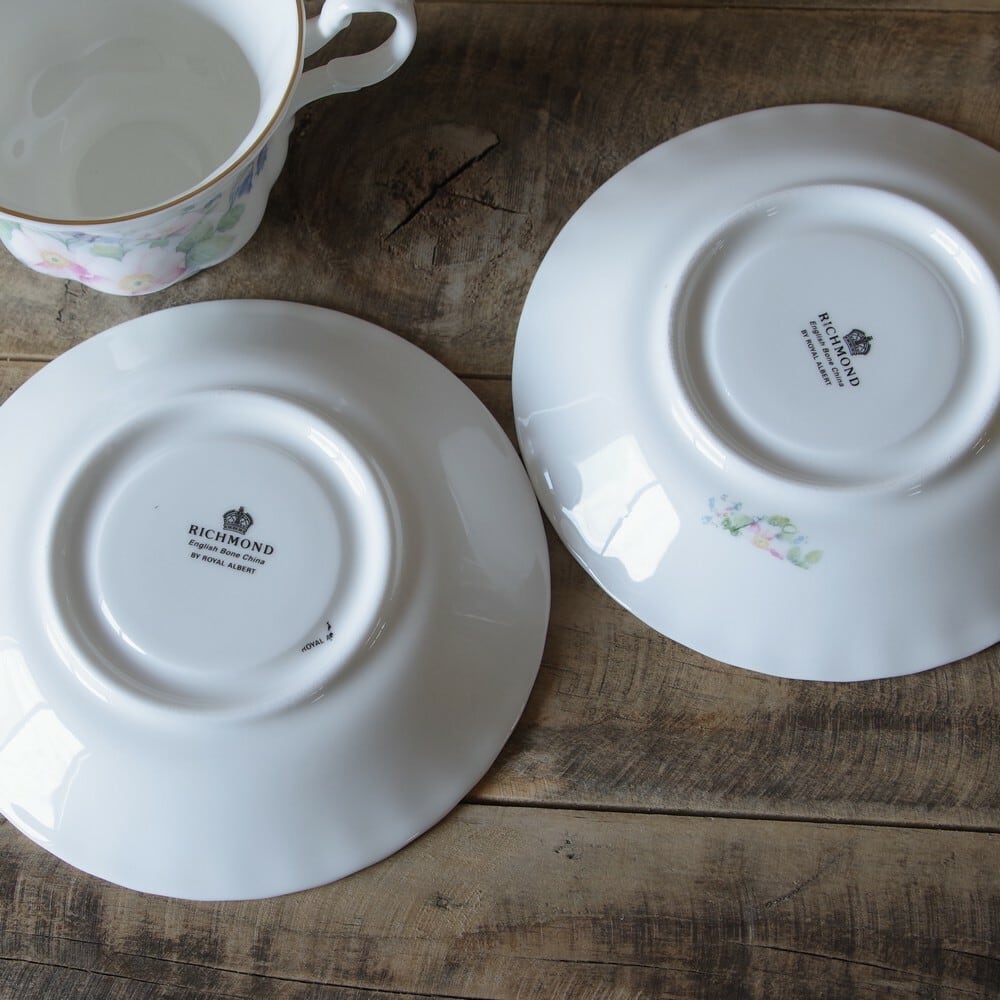 イギリス ロイヤル・アルバート リッチモンド ピンク 花柄 コーヒーカップ ソーサー #190813-3,4 ヴィンテージ Royal Albert Richmond BONE CHINA