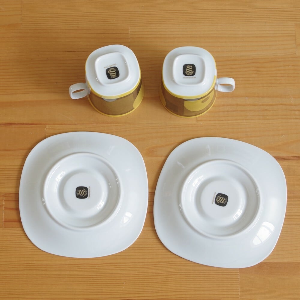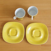 ソーサーは四角い形をしており、上面は黄色く塗られています。