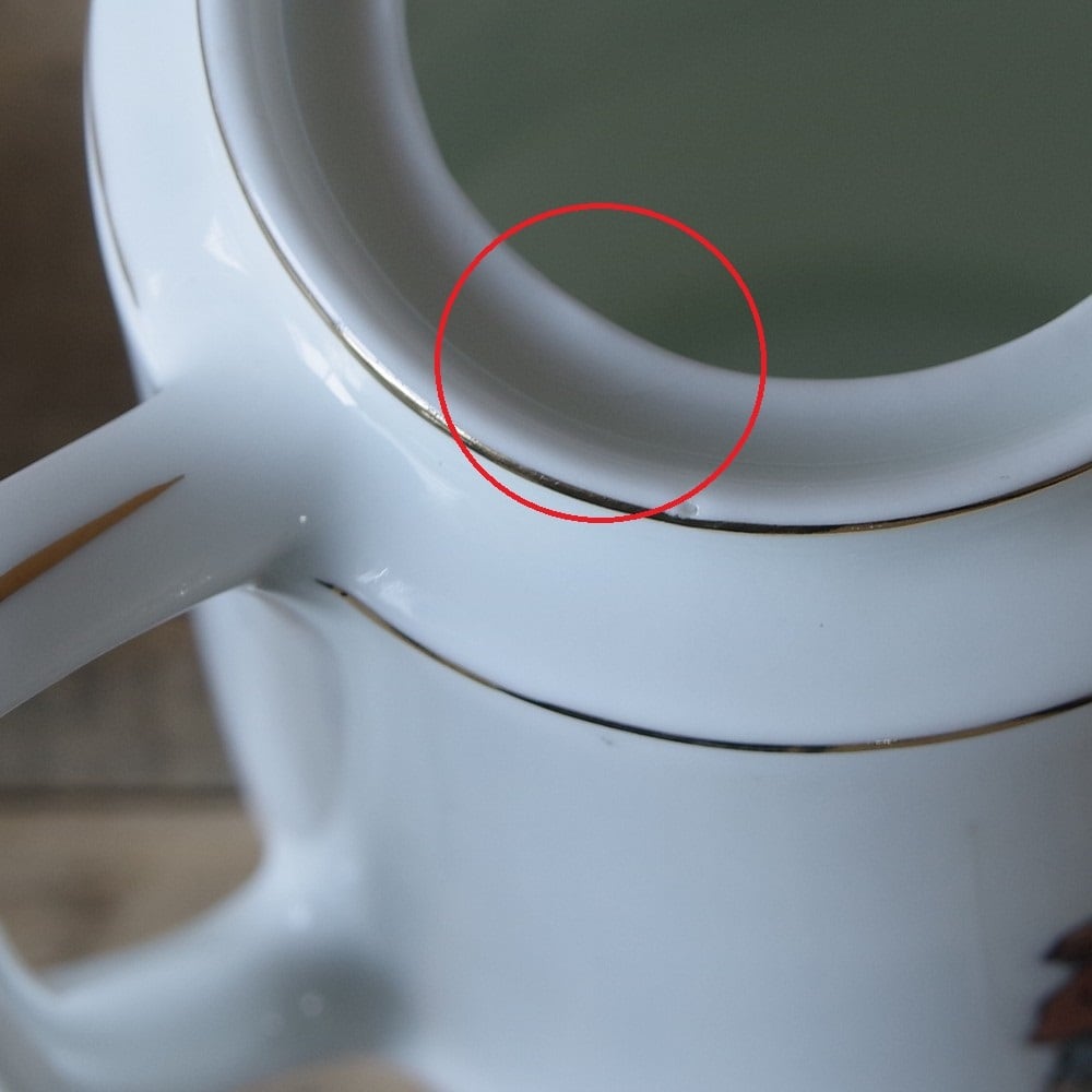 上面の開口部のふちと、側面に貫入のようなヒビが入っています。