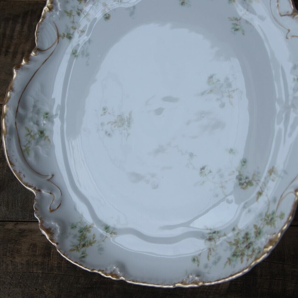 フランス製 アンティーク 食器 リモージュ アビランド グリーン ばら 花柄 プレート 28cm 盛り皿 #190827 Limoges Theodore Haviland ローズ 金彩