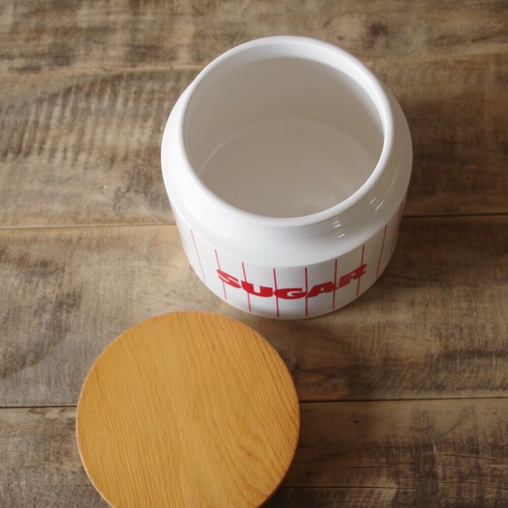 HORNSEA ホーンジー 赤 ストライプ キャニスター SUGAR シュガー 11cm #190830 イギリス製 ビンテージ 雑貨 レトロ ポップ スパイスジャー