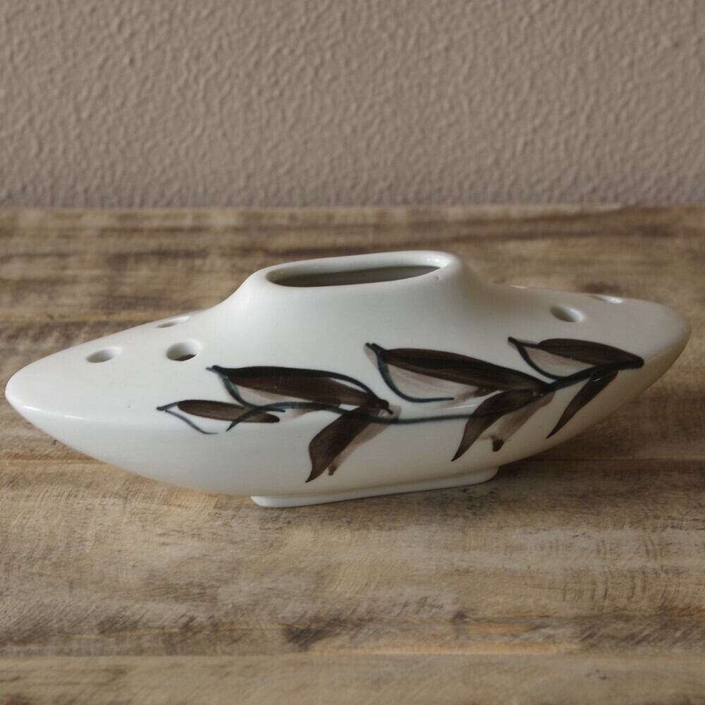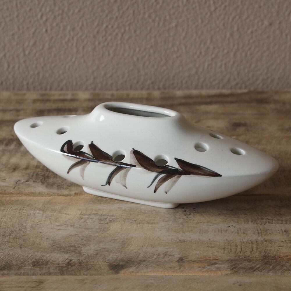 イギリス製 レトロモダン ヴィンテージ 雑貨 ジャージーポタリー 花瓶 フラワーベース ボート型 #190830-1 Jersey Pottery ミッドセンチュリー 手描き 陶器
