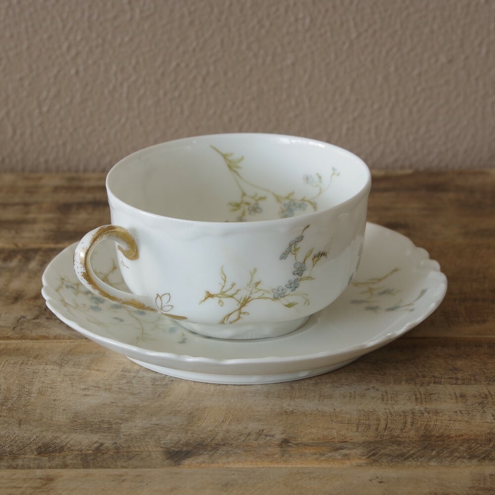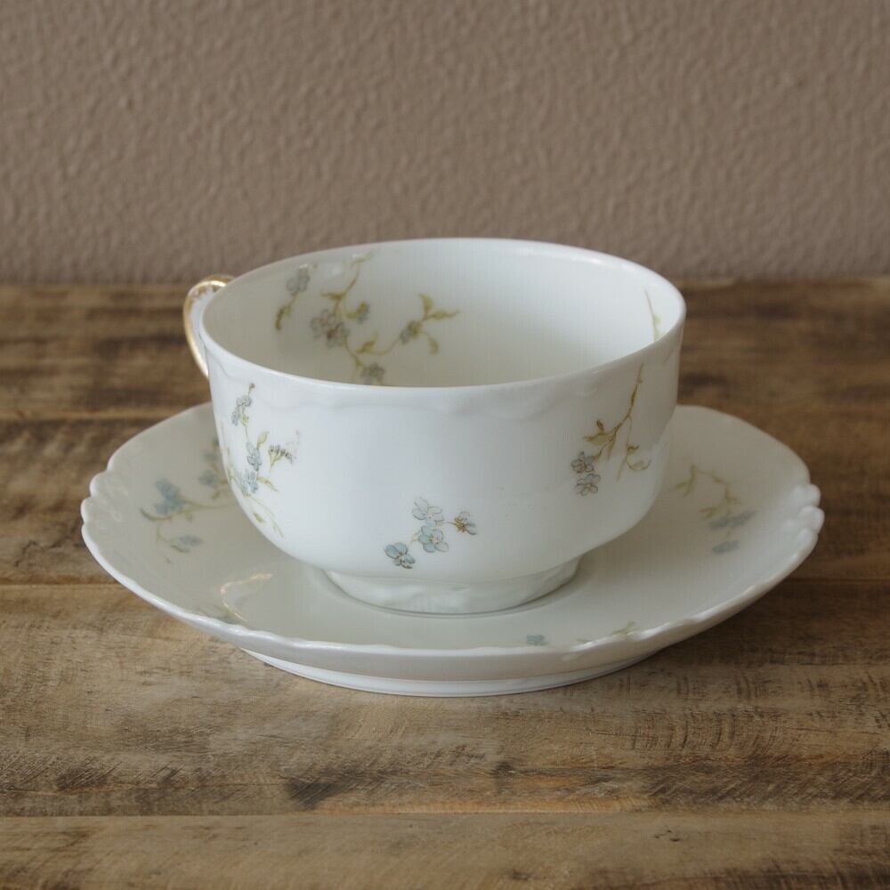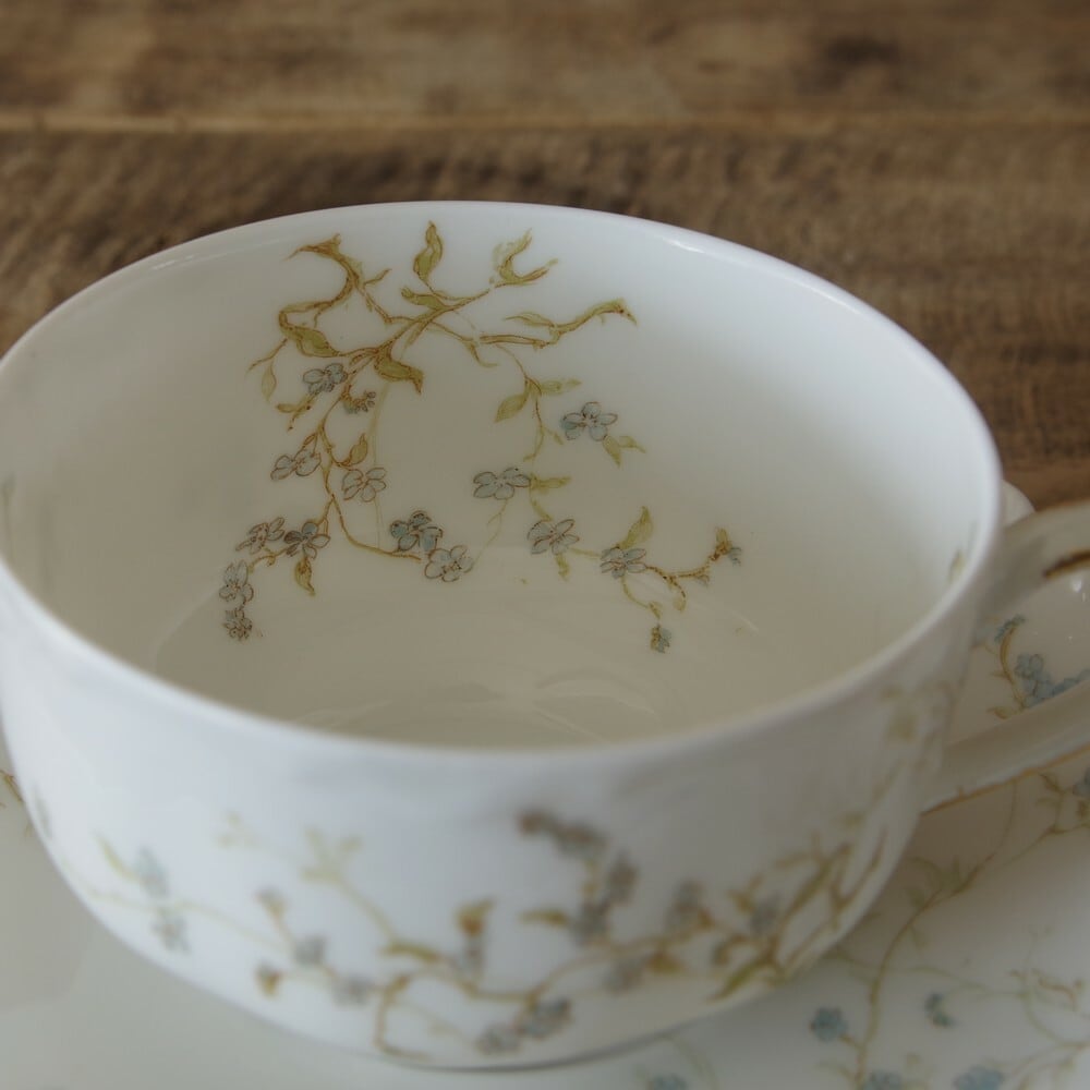 フランス アンティーク 陶器 Haviland Limoges リモージュ アビランド 水色 花柄 ティーカップ ソーサー #190831-1 ゴールド 金彩 THE CHERBOURG 忘れな草