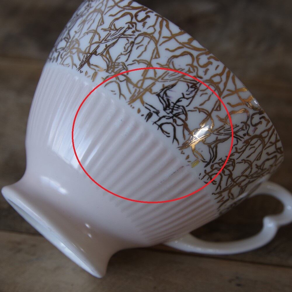 ソーサー、プレートのリム部分にも同様の模様やエンボスが入っており、