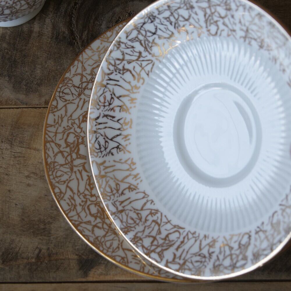 ソーサー、プレートのリム部分にも同様の模様やエンボスが入っており、