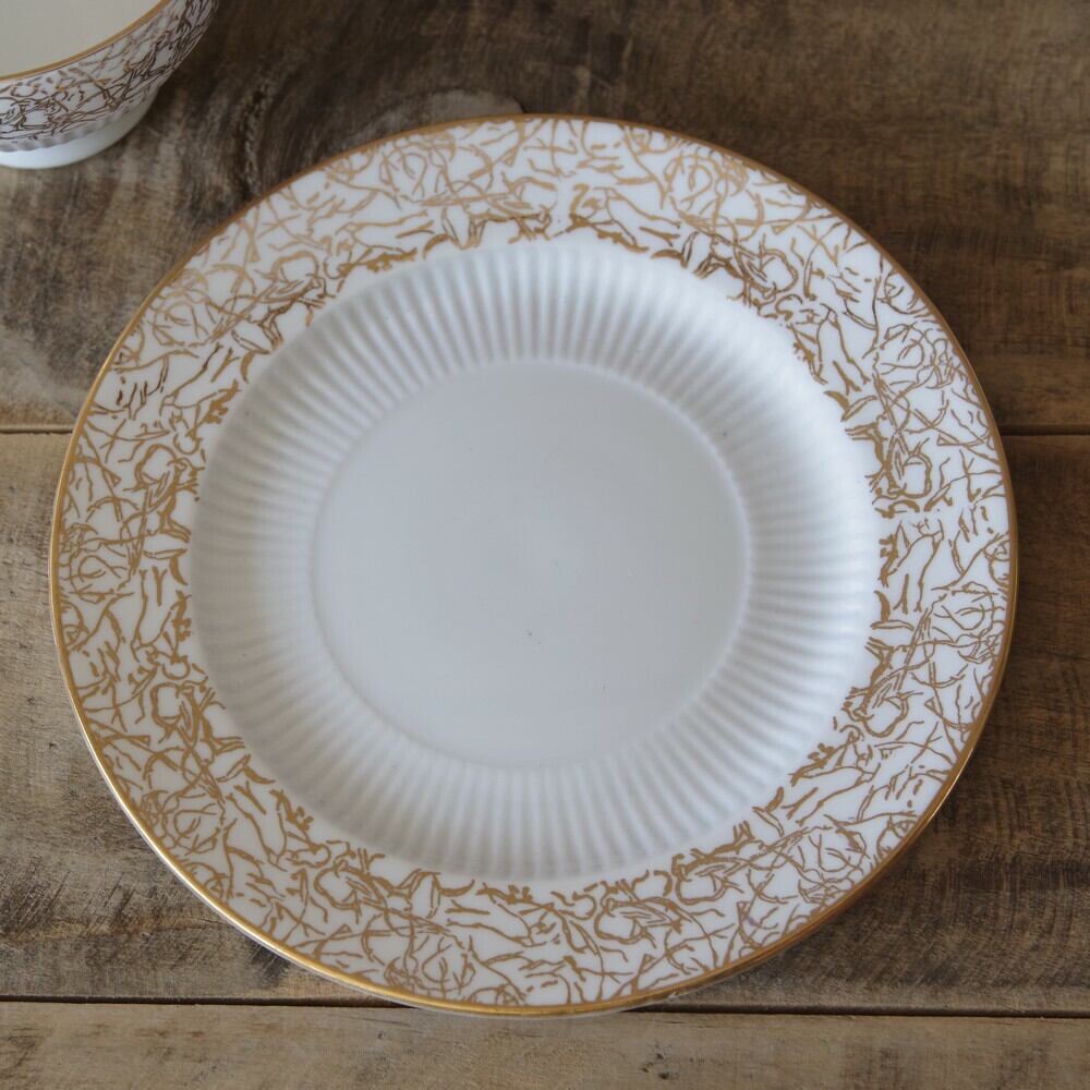 イギリス アンティーク食器 Colclough グレー ゴールド コーヒーカップ ソーサー デザートプレート トリオ #190915-6 BONE CHINA ヴィンテージ コルクラフ レトロ