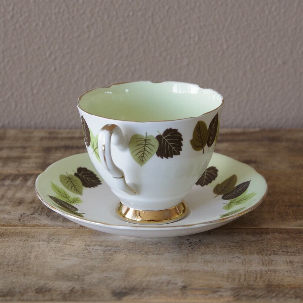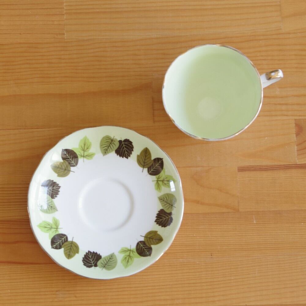 イギリス ヴィンテージ 食器 ロイヤルスタッフォード 木の葉柄 コーヒーカップ ソーサー #190925-1 レトロ リーフ 北欧風 アンティーク Royal Stafford