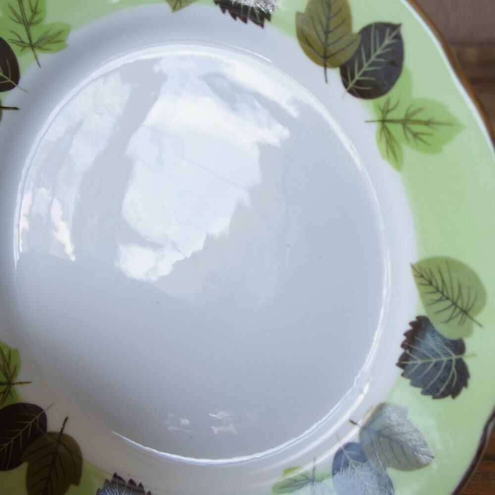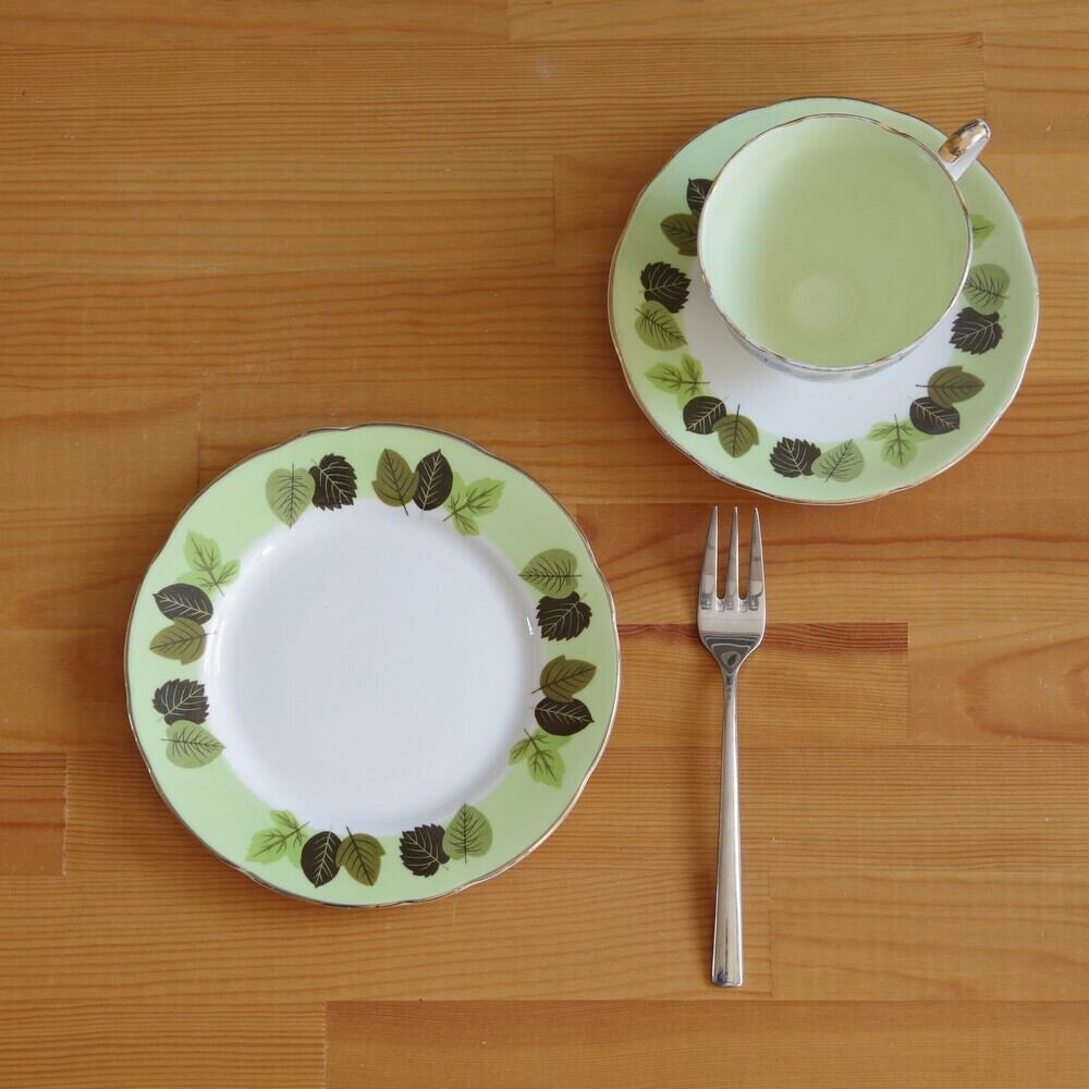 ロイヤルスタッフォード レトロ 木の葉柄 グリーン デザートプレート 17cm ケーキ皿 #190925-1 リーフ 北欧風 ヴィンテージ 食器 アンティーク BONE CHINA