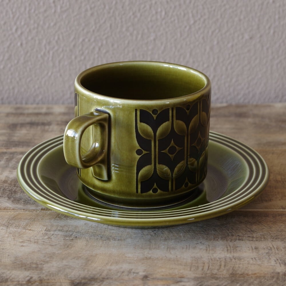ヴィンテージ食器 ホーンジー エアルーム グリーン コーヒーカップ ソーサー #190926-3 HORNSEA Heirloom イギリス製 レトロモダン 緑