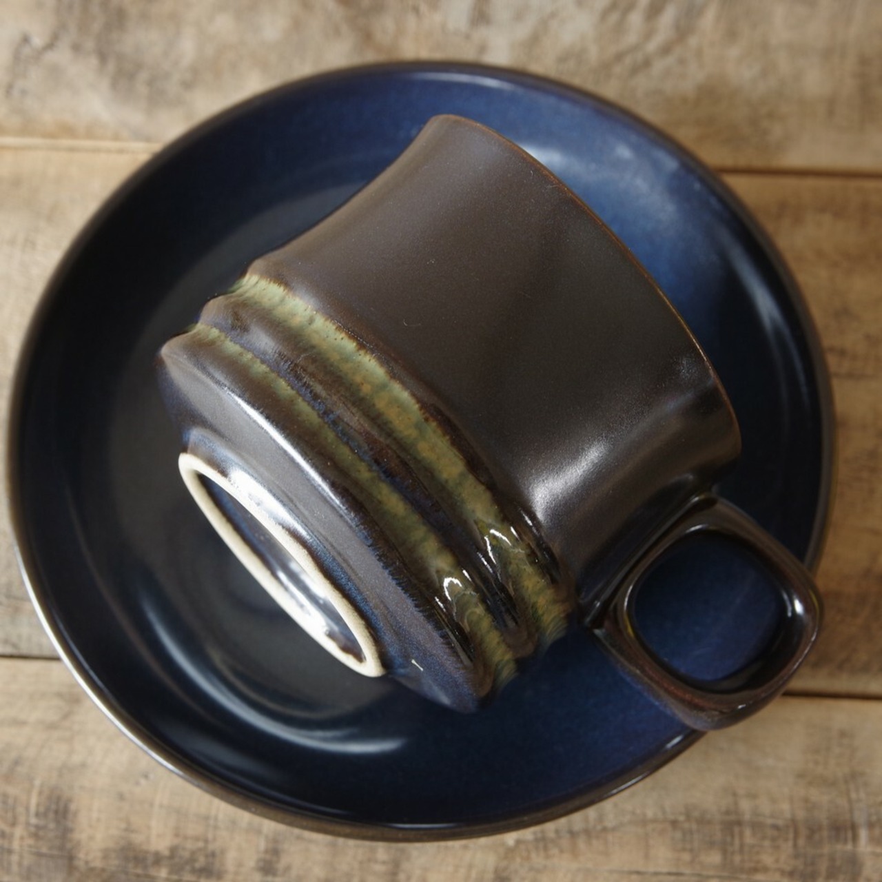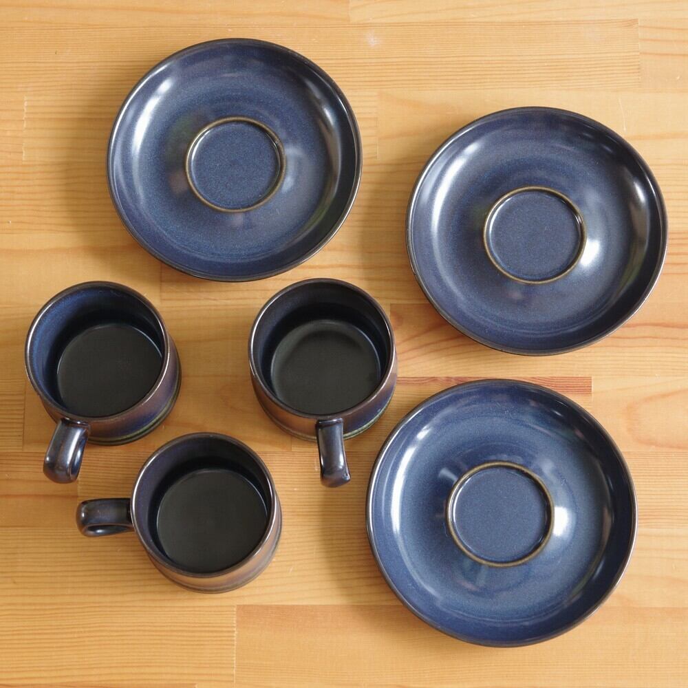 DENBY デンビー Kismet キズミット コーヒーカップ ソーサー #190927-1~3 ブルー ブラック イギリス ヴィンテージ食器 レトロモダン