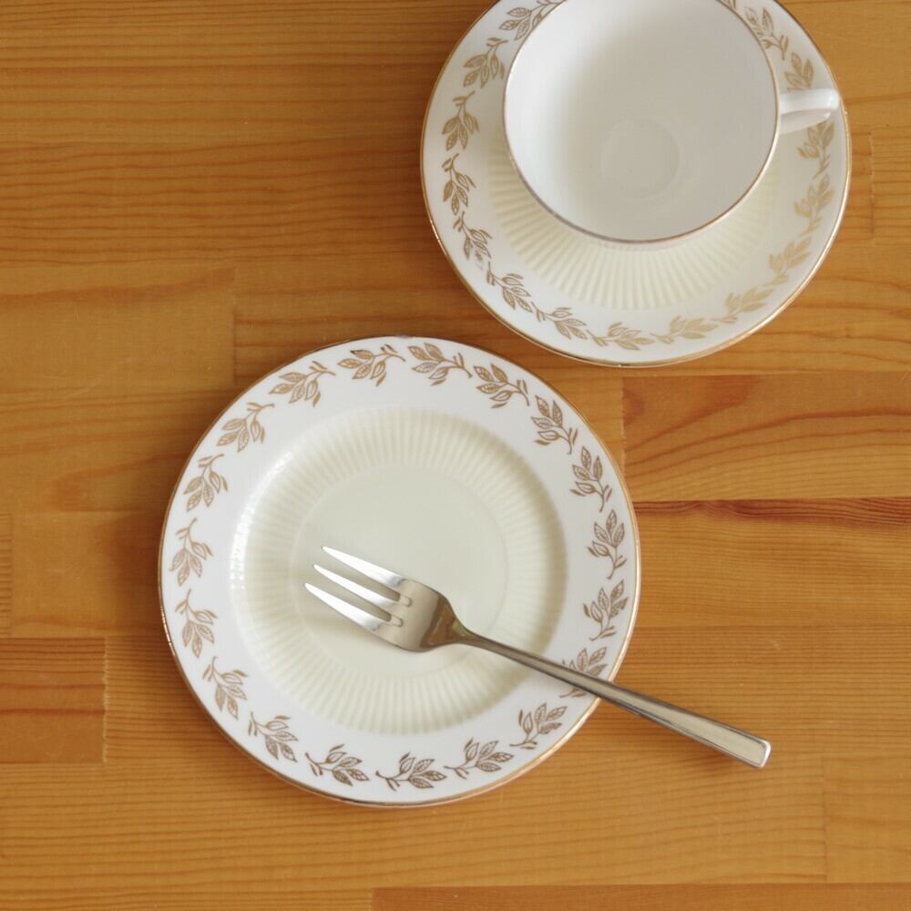 Colclough コルクラフ イエロー ゴールド リーフ柄 ケーキ皿 デザートプレート ヴィンテージ 食器 #191007-1 アンティーク レトロ ミッドセンチュリー 陶器 取り皿 16cm